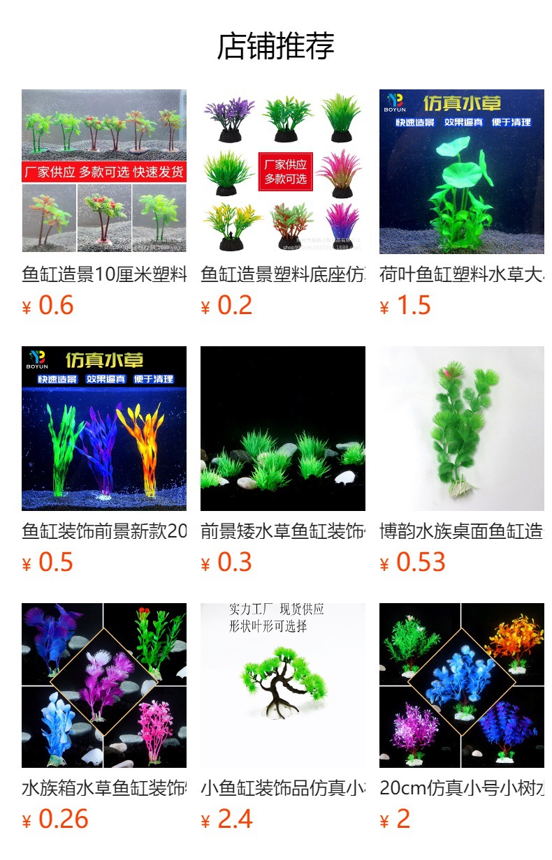 국경을 넘는 공급원에서 온 인조 수초, 수족관 식물, 어항 조경용 플라스틱 가짜 꽃, 호텔 과일 접시 꽃 장식, 분재스토어 가기