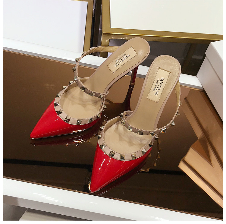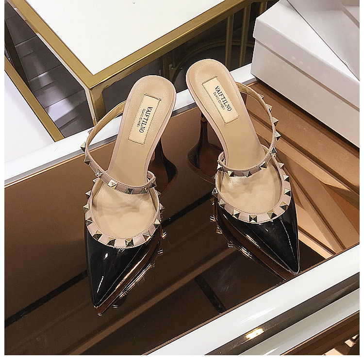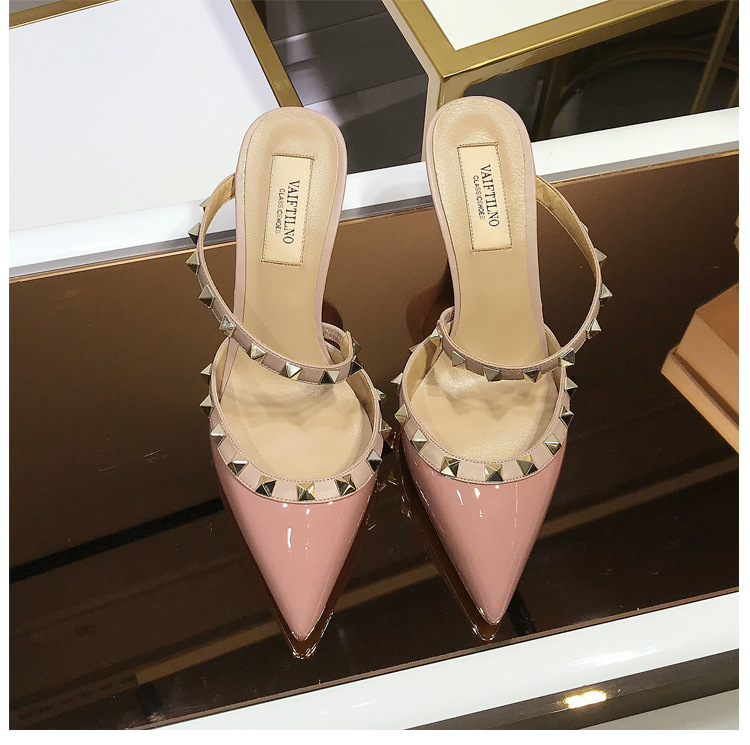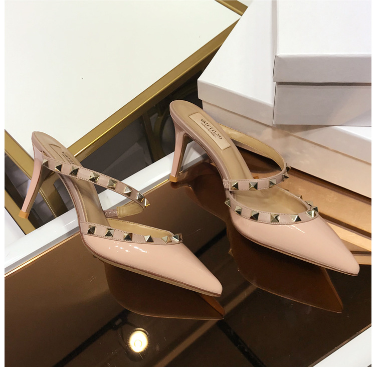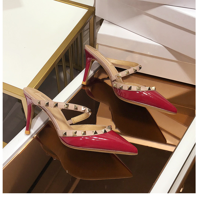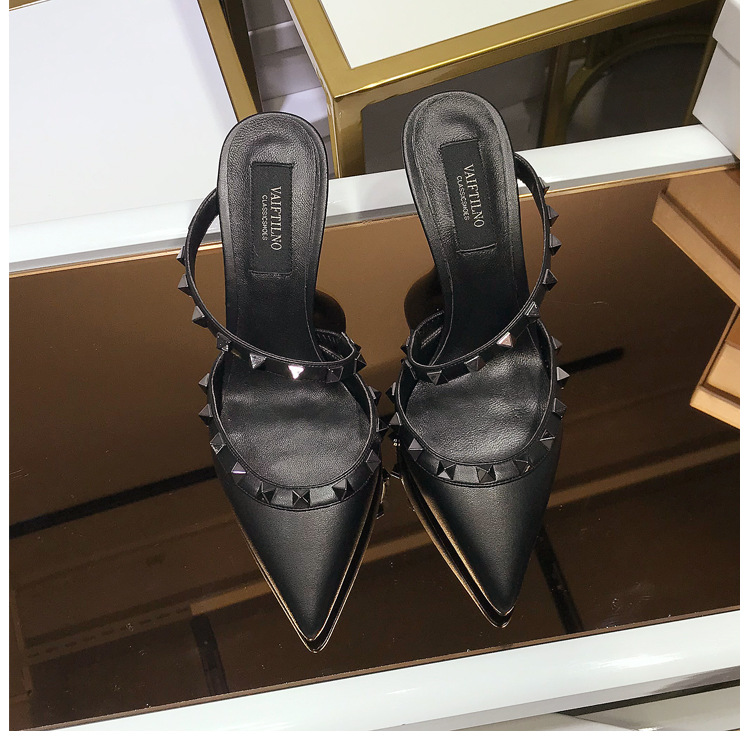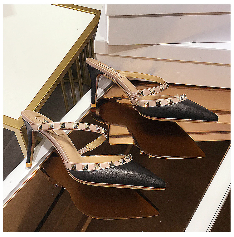 2025 새로운 샌들 여성 겉옷 Baotou 하프 슬리퍼 스틸레토 지적 리벳 샌들 여성 하이힐 슬리퍼스토어 가기