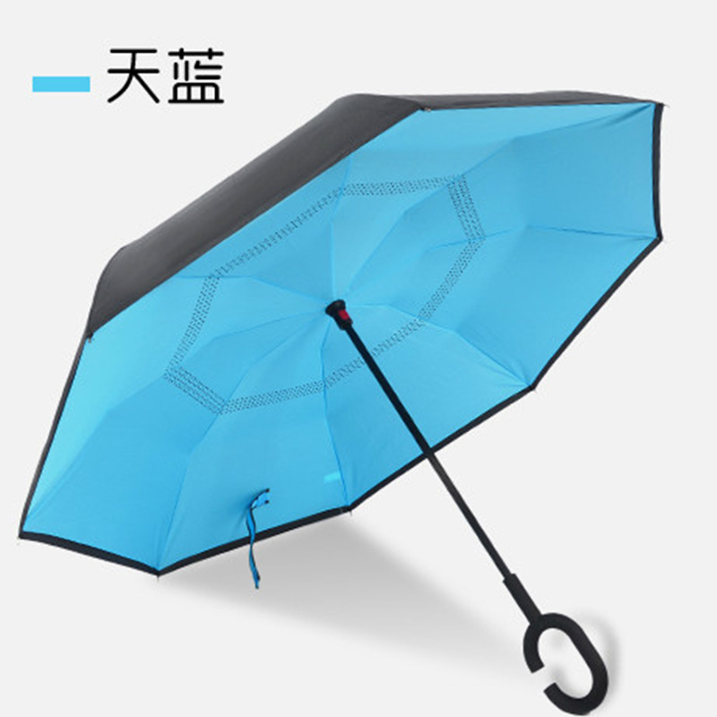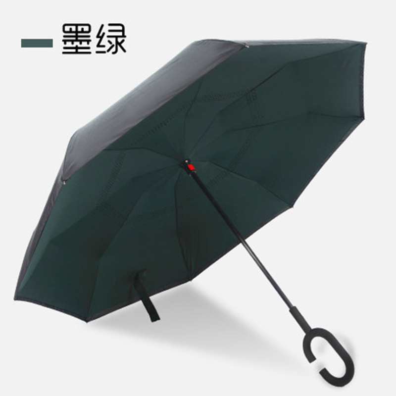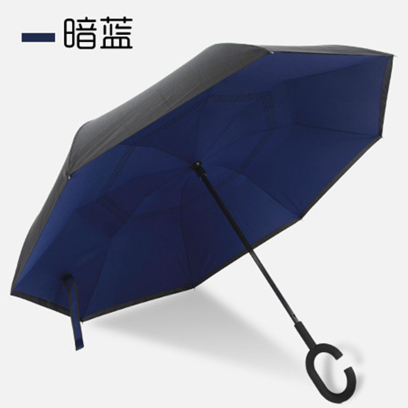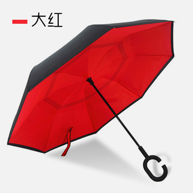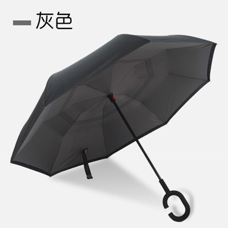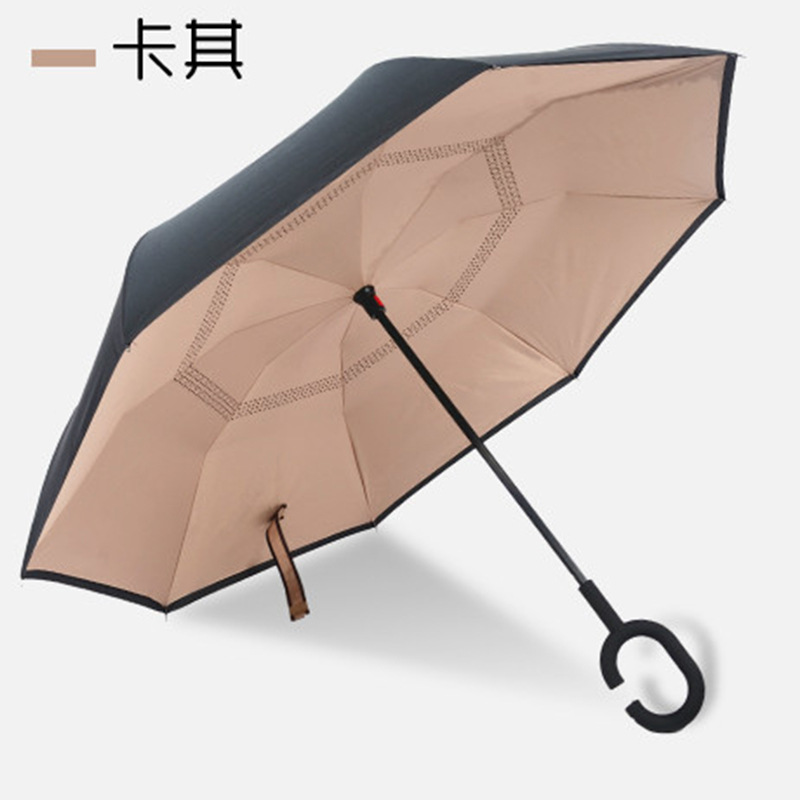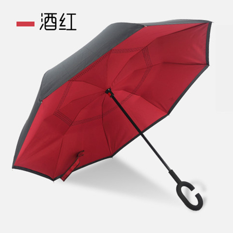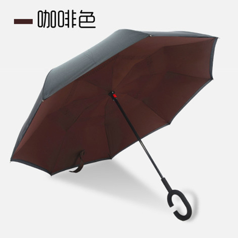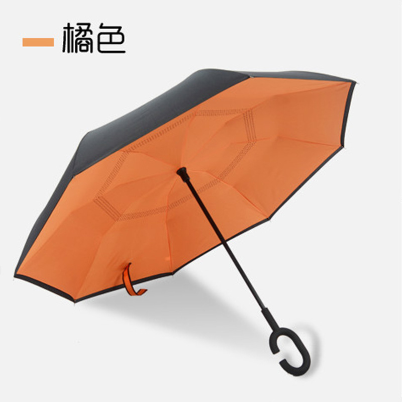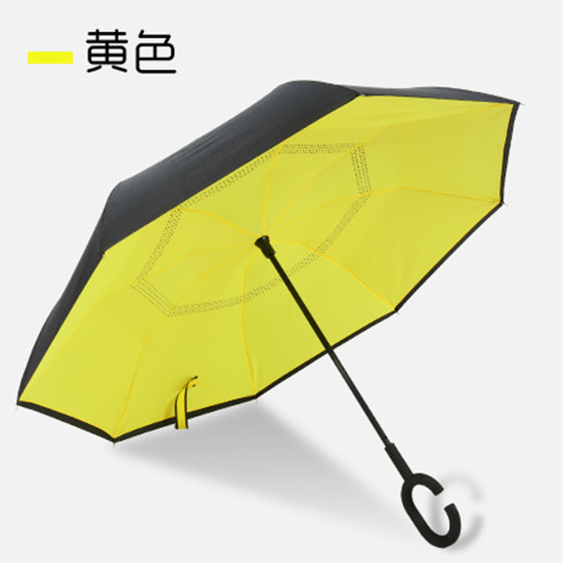 뒤집어 쓸 수 있는 광고용 이중 구조 스탠딩 핸즈프리 C형 우산, 긴 손잡이 직선형 자동차 로고 인쇄 우산, 폭우 방지스토어 가기