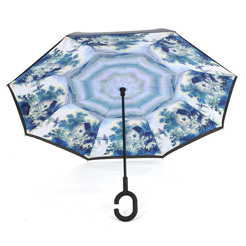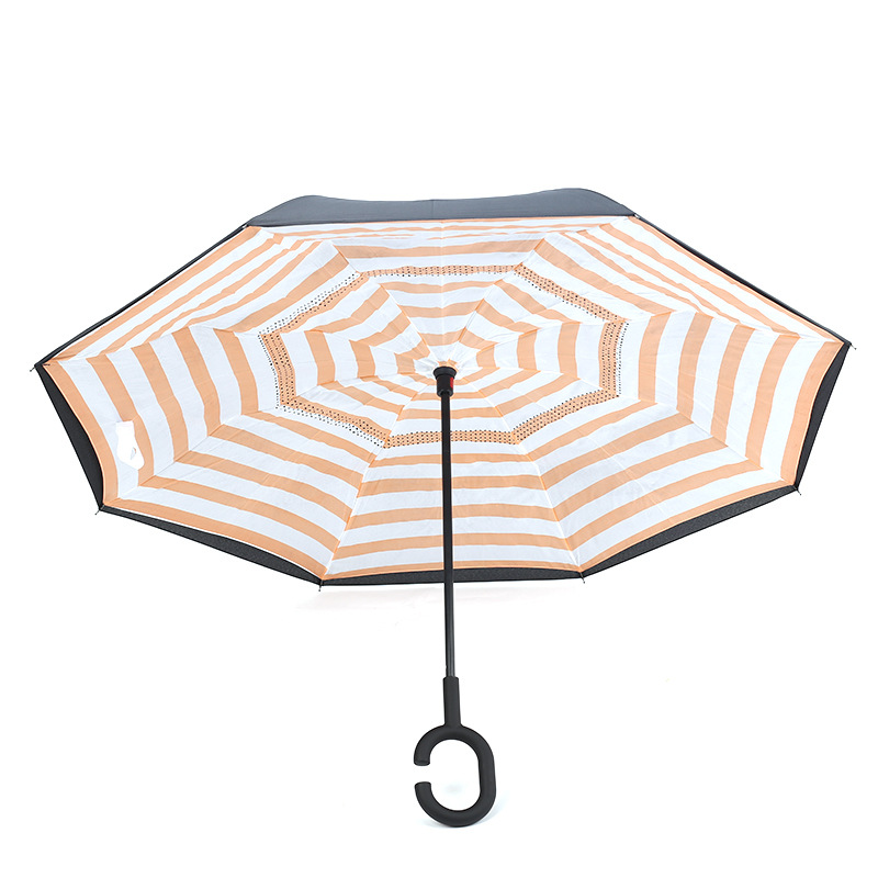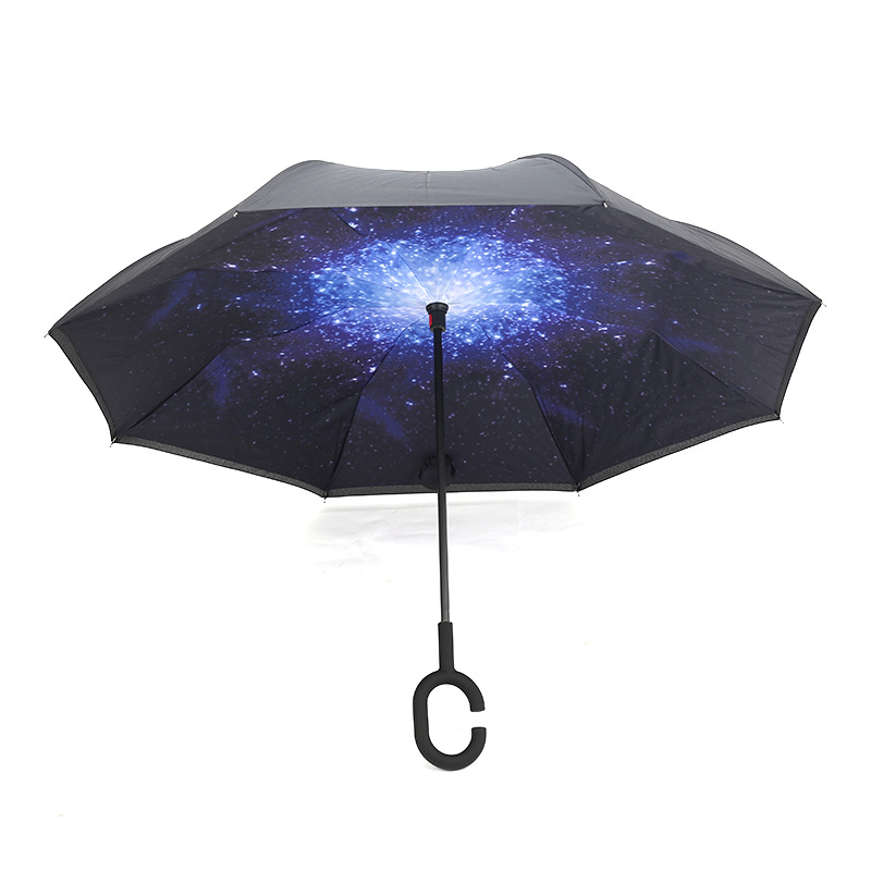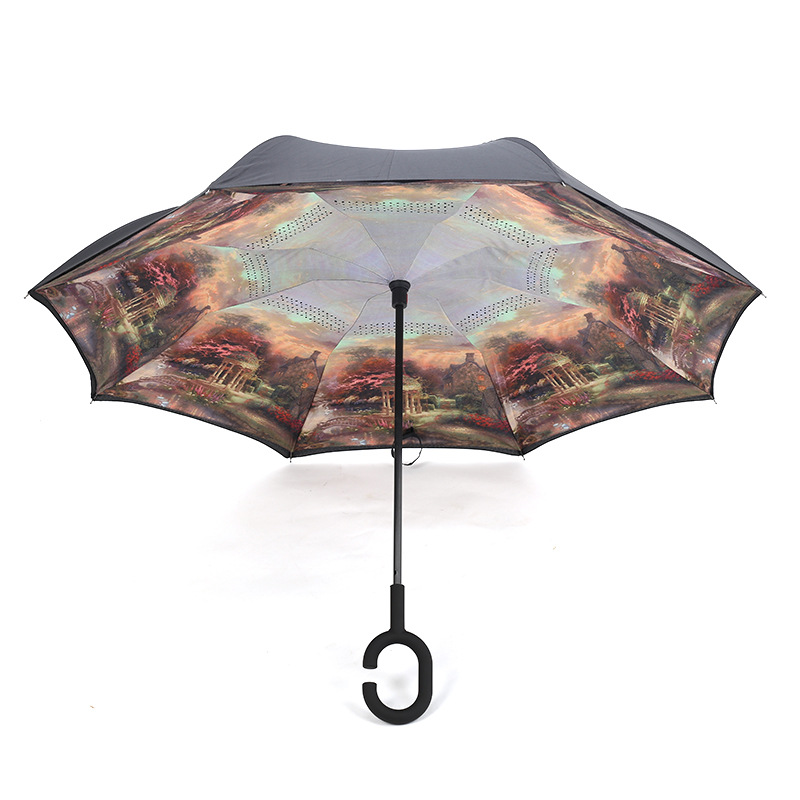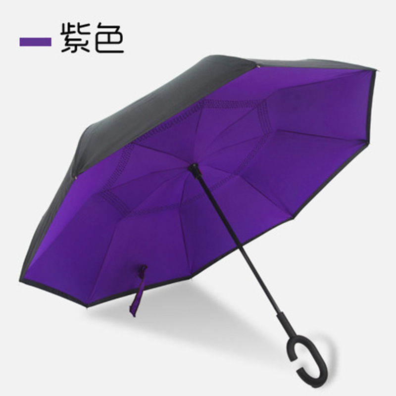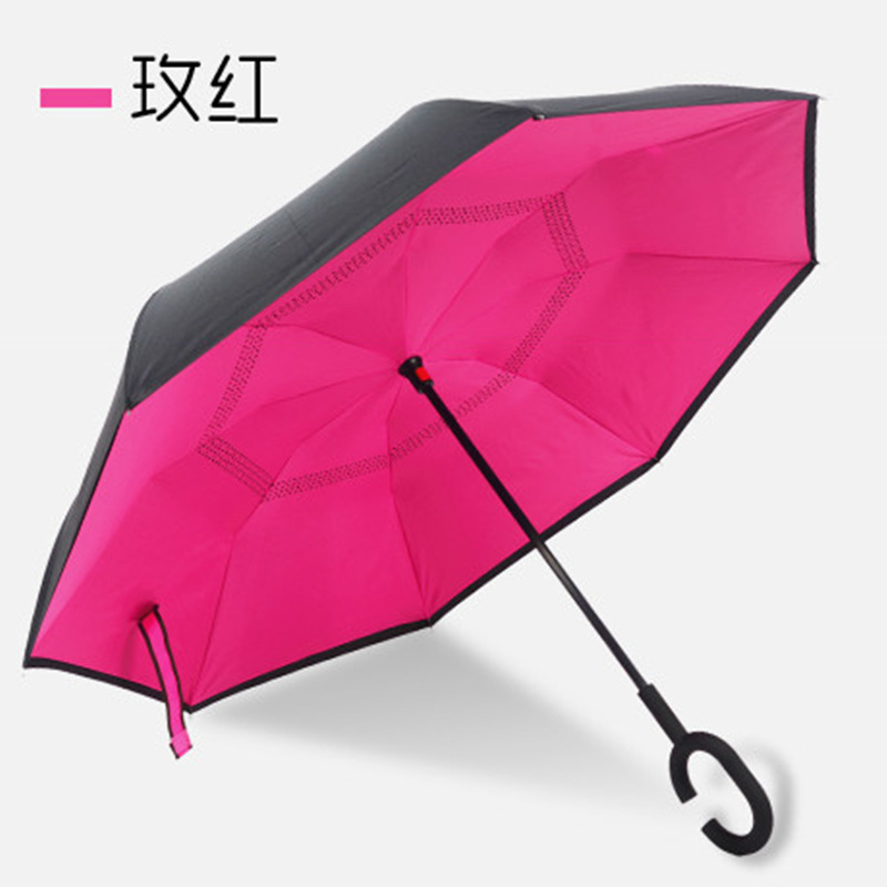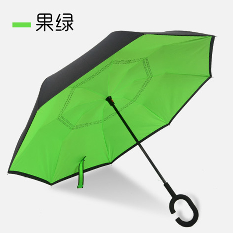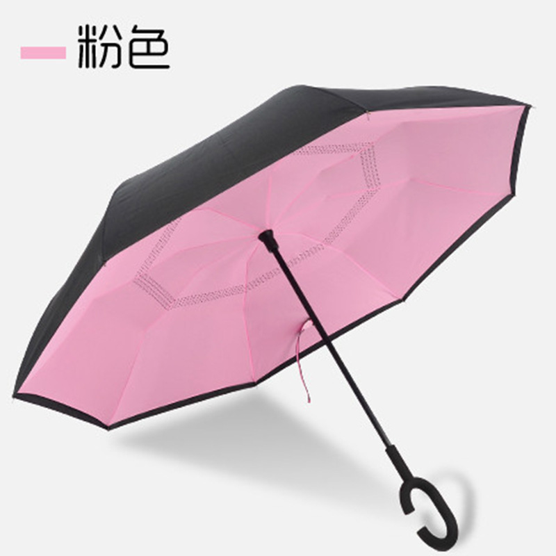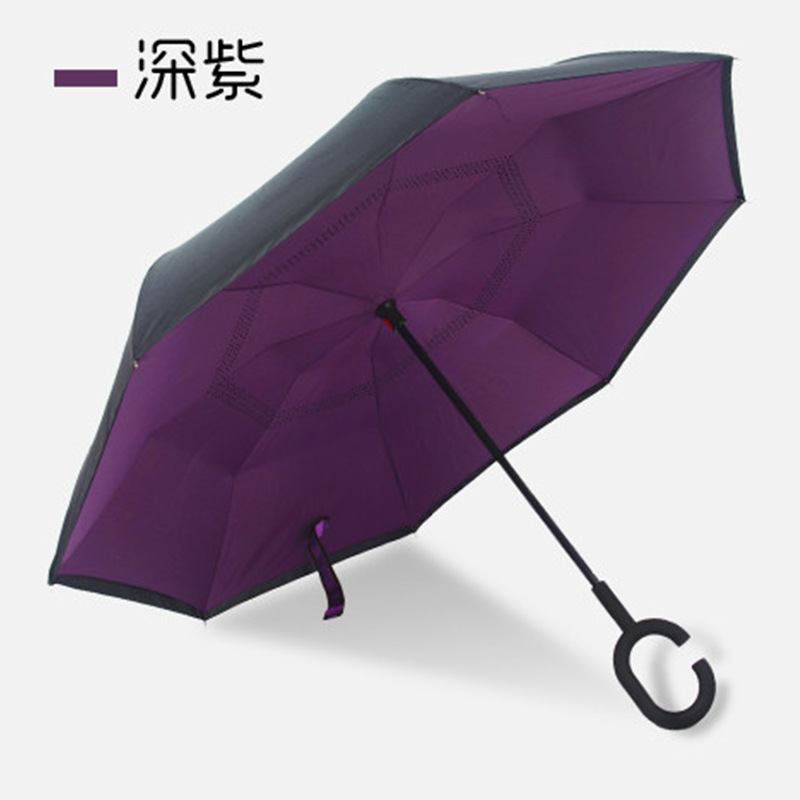 뒤집어 쓸 수 있는 광고용 이중 구조 스탠딩 핸즈프리 C형 우산, 긴 손잡이 직선형 자동차 로고 인쇄 우산, 폭우 방지스토어 가기