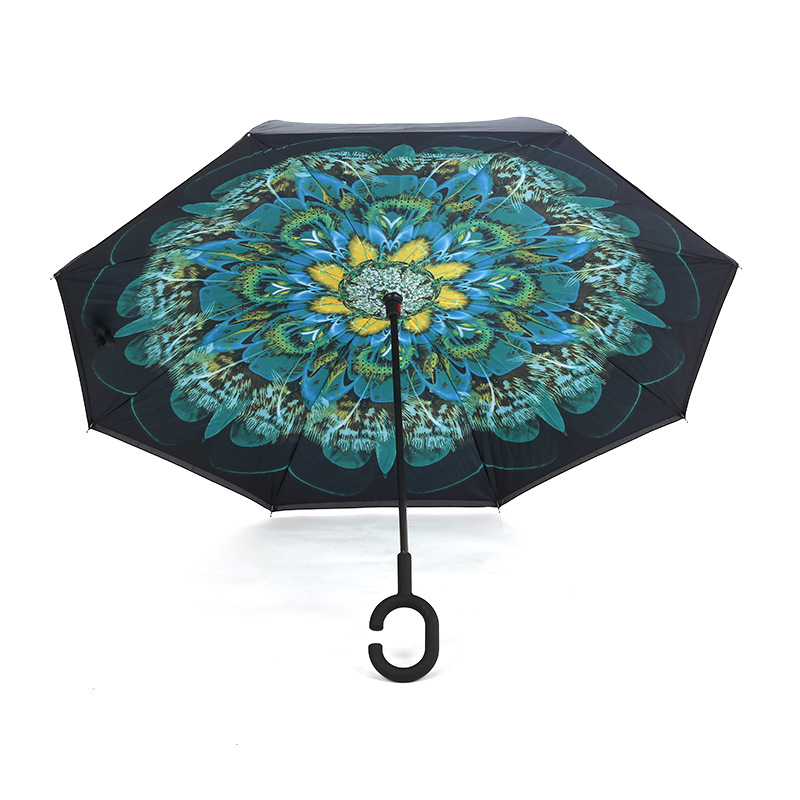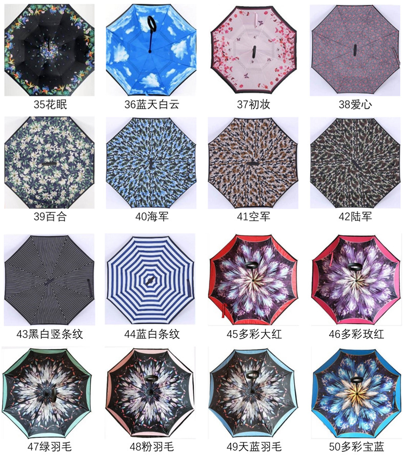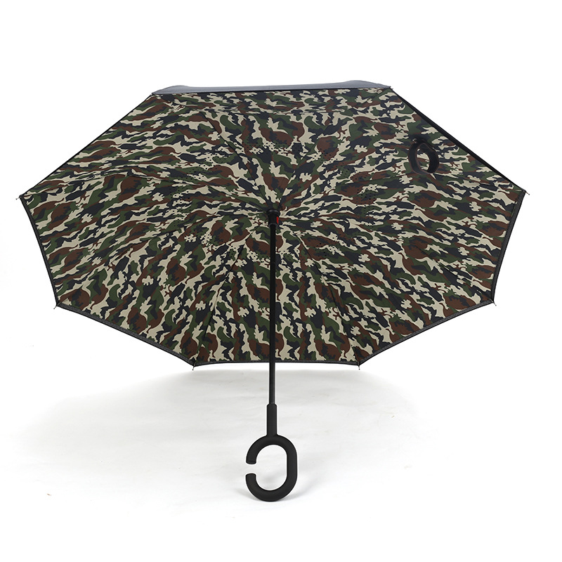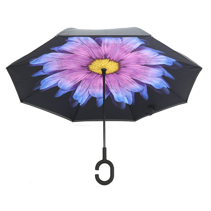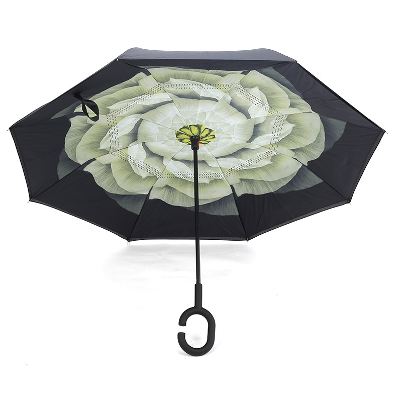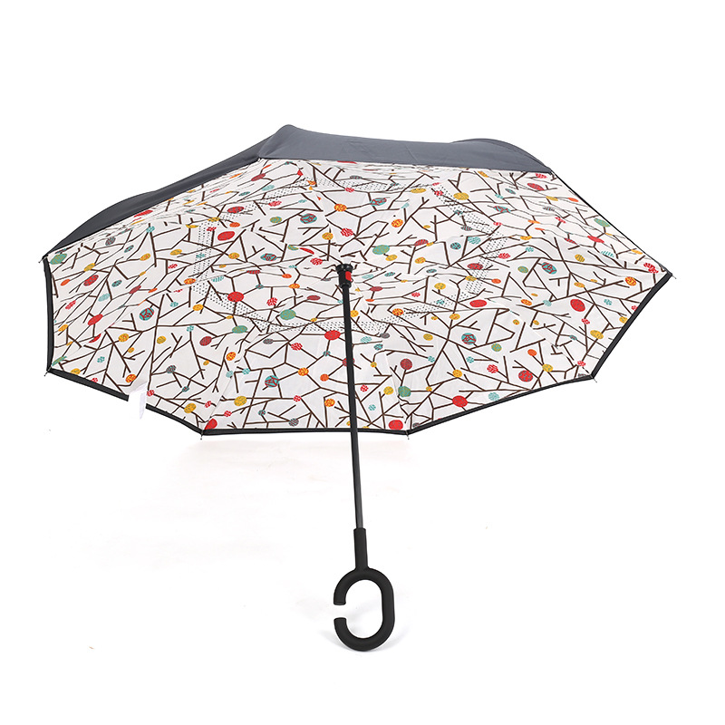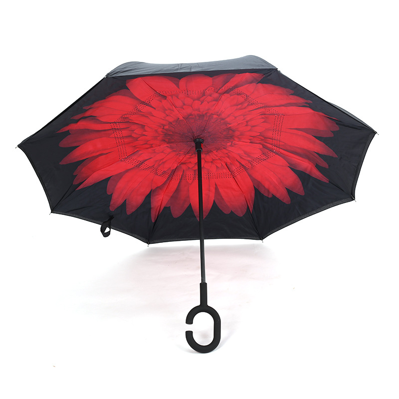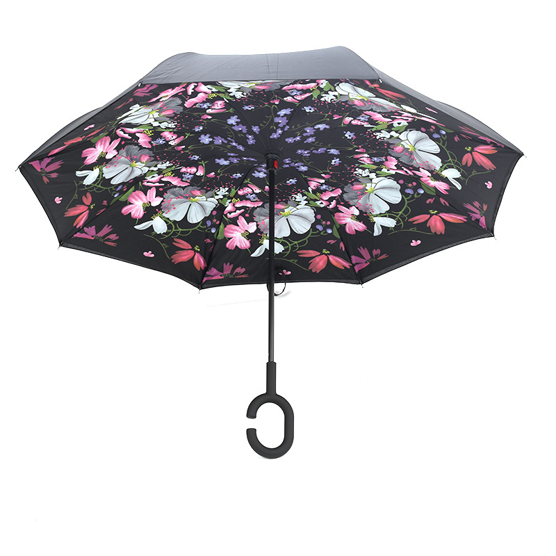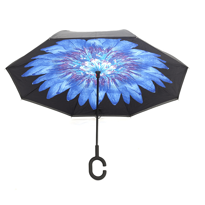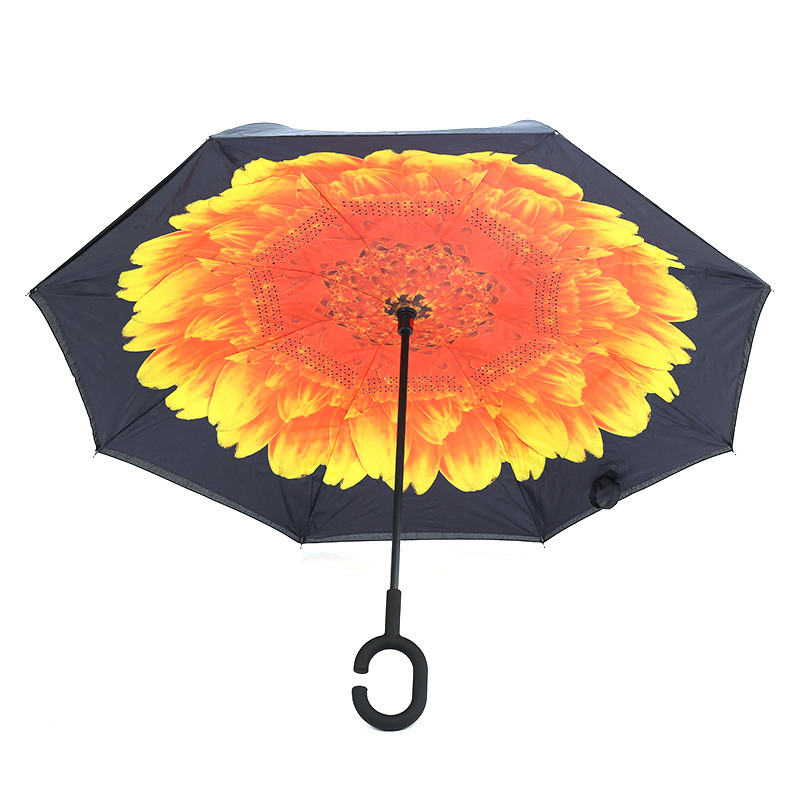 뒤집어 쓸 수 있는 광고용 이중 구조 스탠딩 핸즈프리 C형 우산, 긴 손잡이 직선형 자동차 로고 인쇄 우산, 폭우 방지스토어 가기