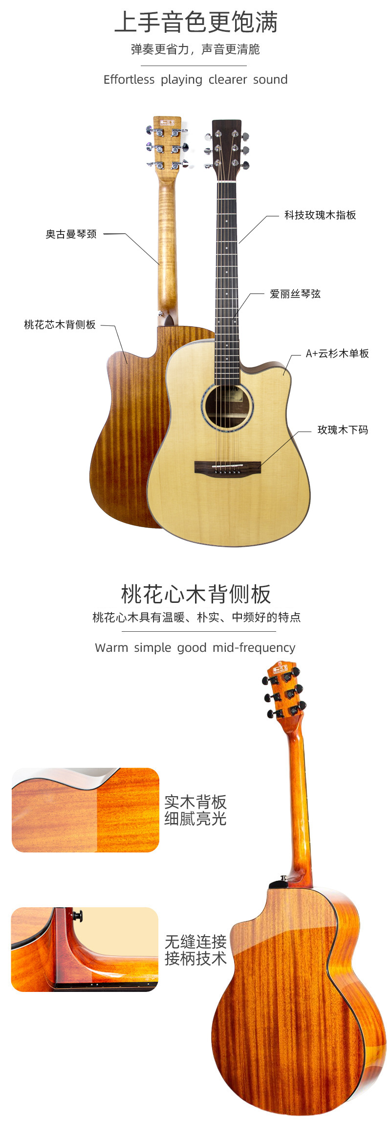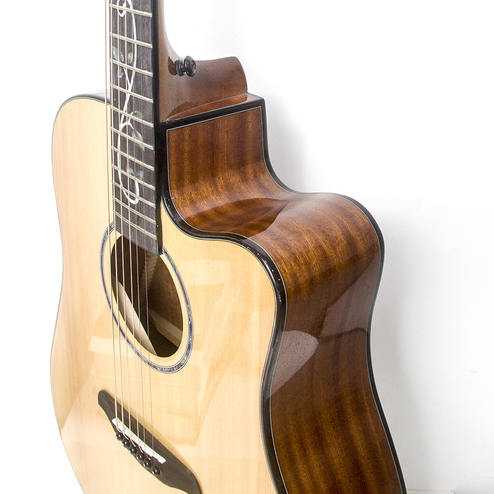 포크 기타 41inch 스프루스 마호가니 베니어 밝은 악기 도매 보급형 등나무 꽃 모델 솔리드 우드 기타스토어 가기