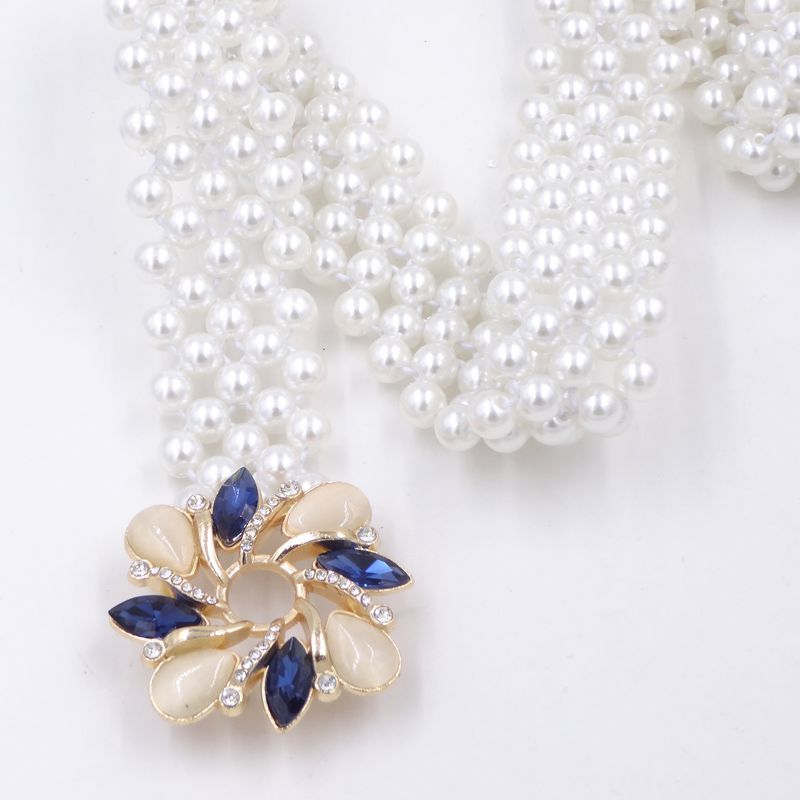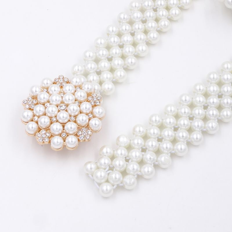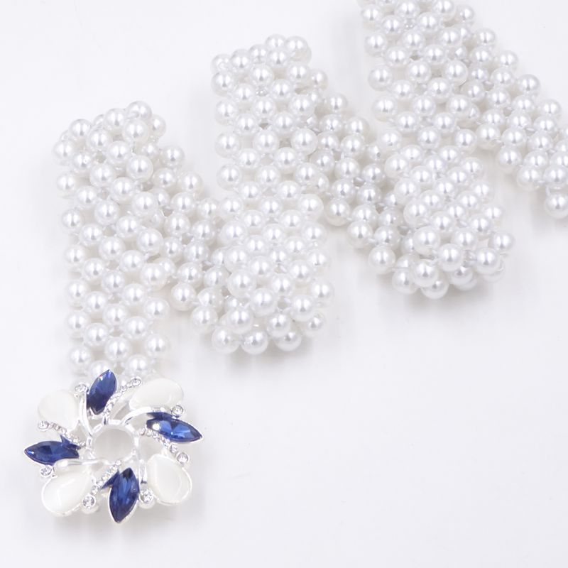 숙녀 장식 벨트 조커 모조 다이아몬드 진주 허리 체인의 한국어 버전 여성 여름 탄성 스커트 체인 제조 업체 도매스토어 가기
