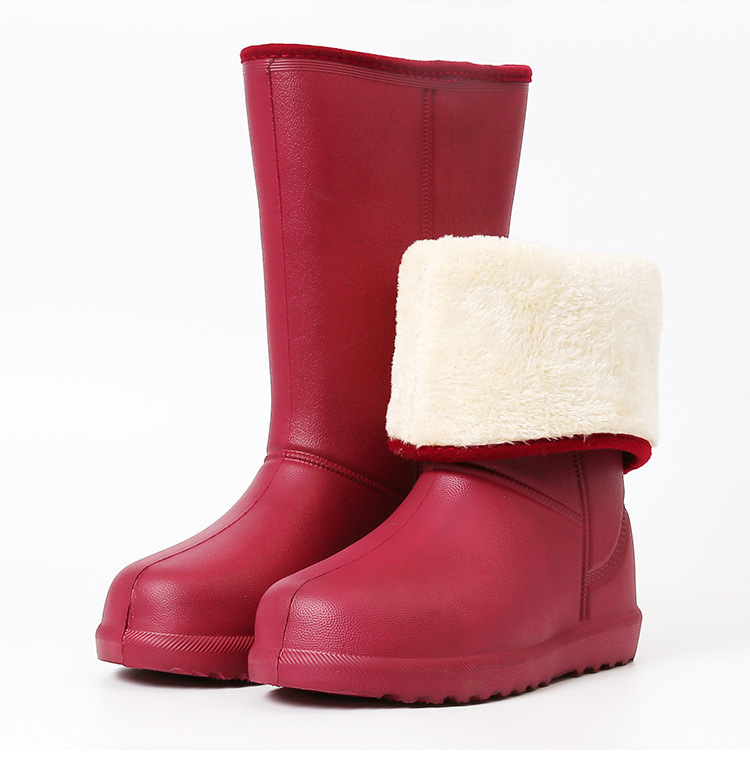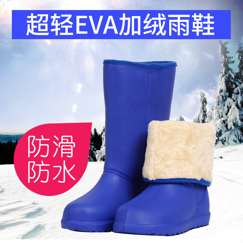 겨울 여자의 장화 높은 장화 기모 면 고무 신발 EVA 폼 울트라 라이트 물 신발 따뜻한 미끄럼 방지 물 재킷