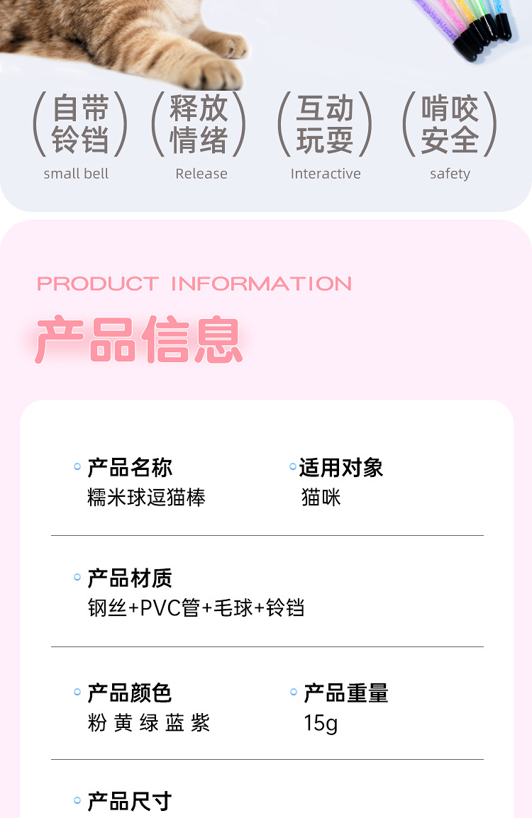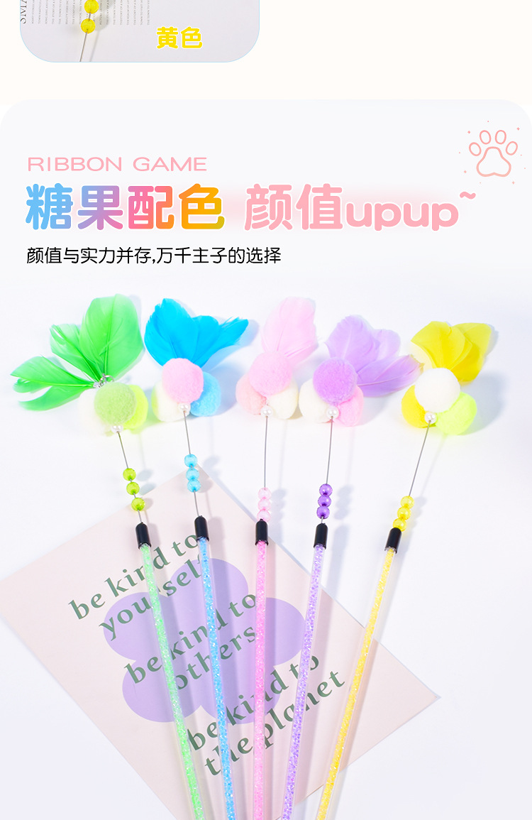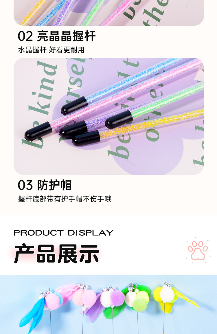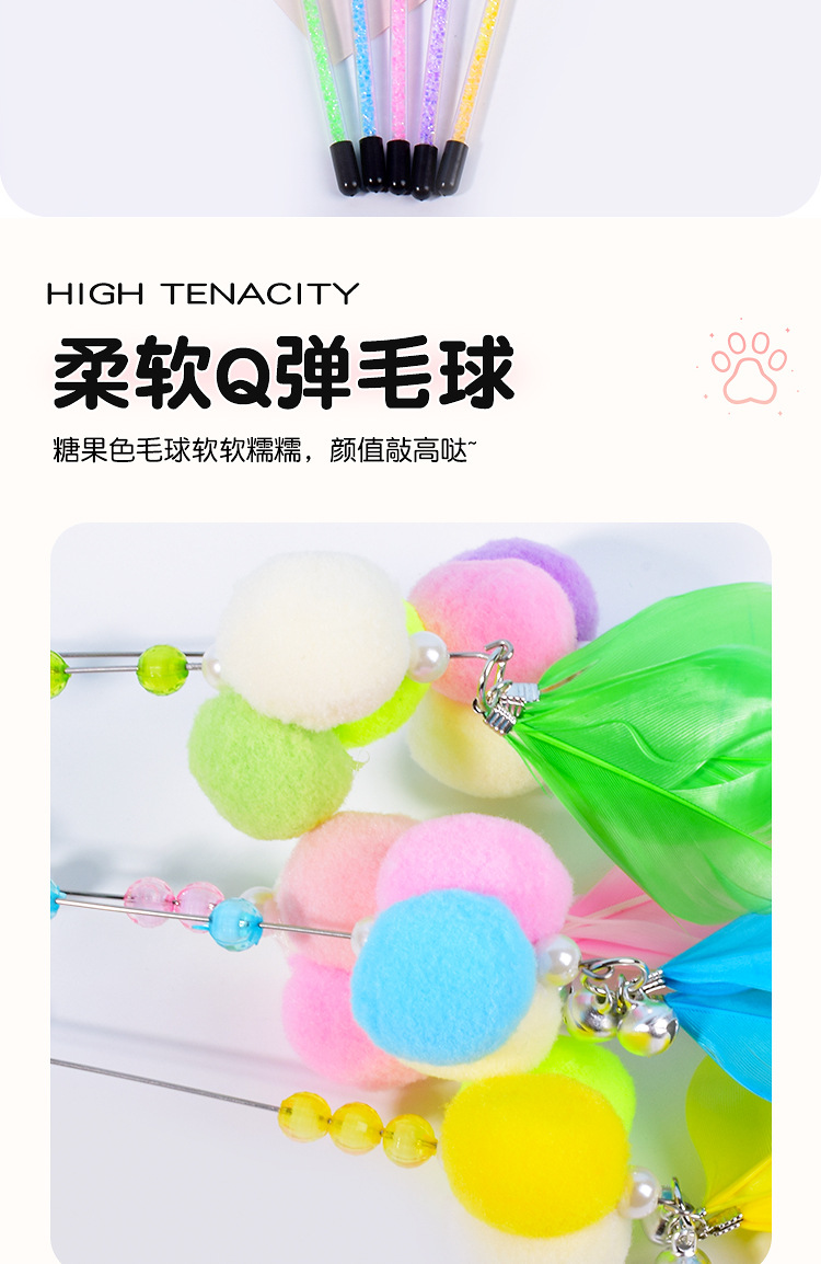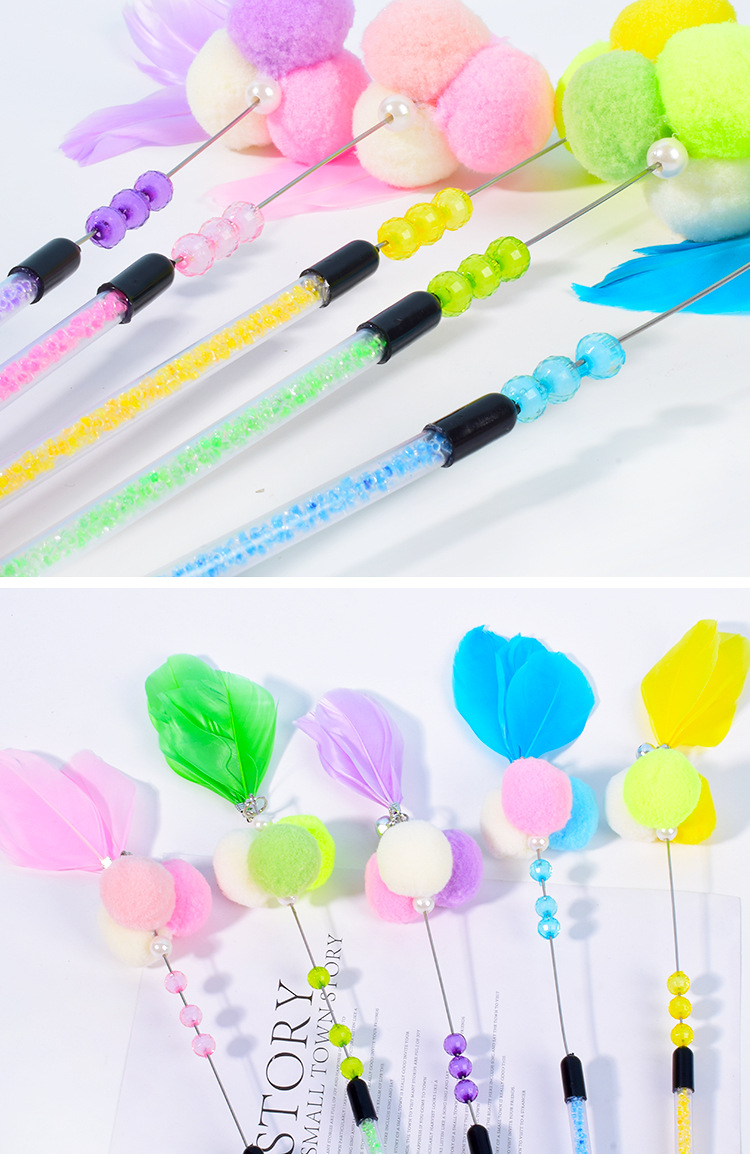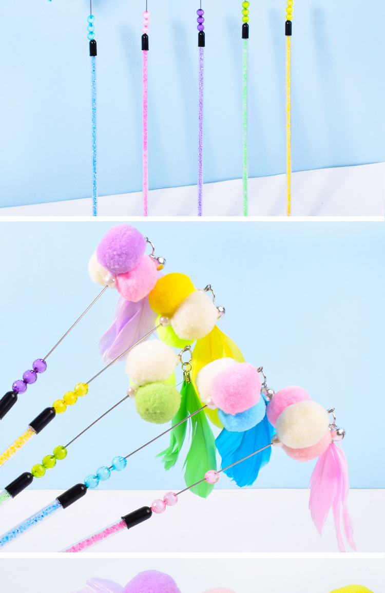 새로운 고양이 장난감 수제 벨 스티키 주먹밥 고양이 티저 크리스탈 튜브 깃털 고양이 티저 폴 고양이 용품