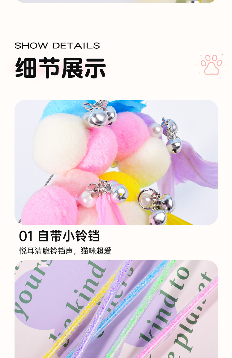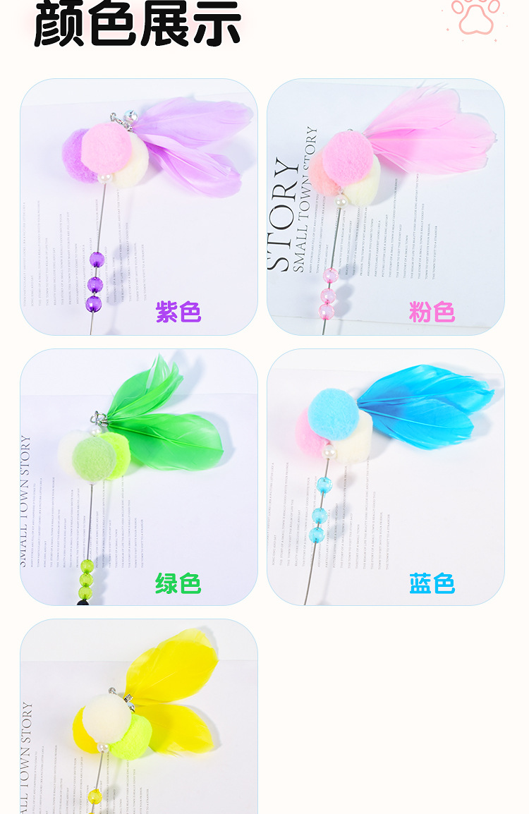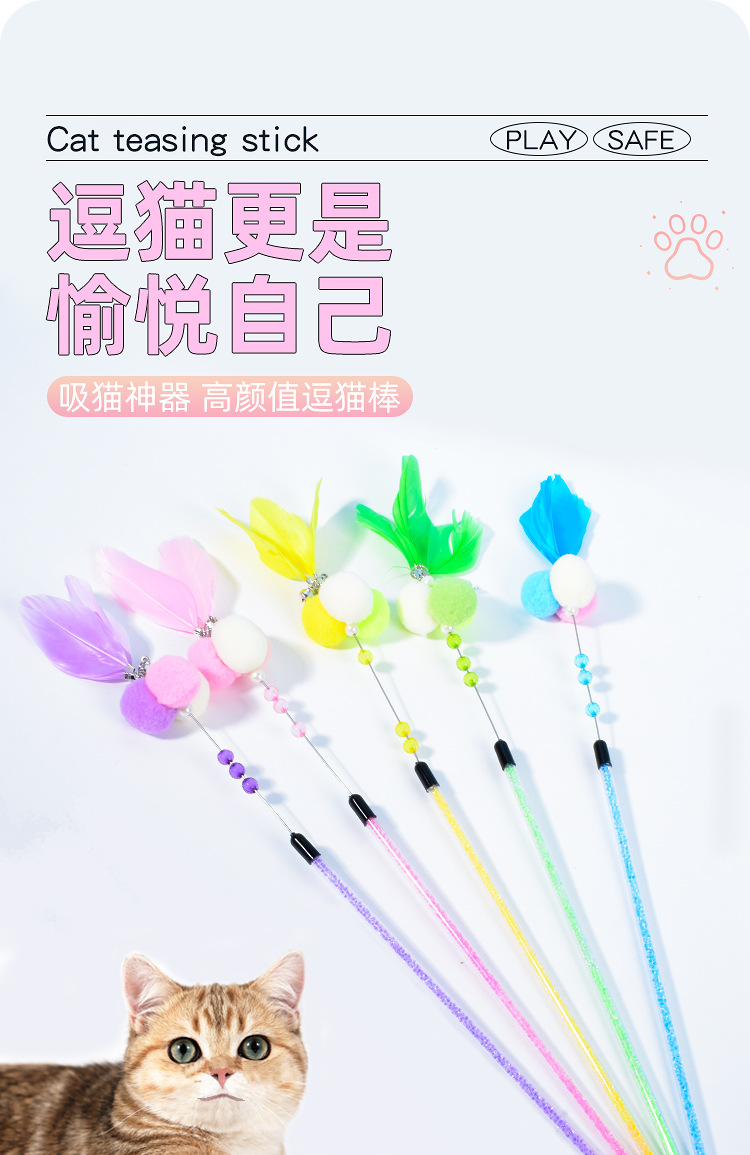 새로운 고양이 장난감 수제 벨 스티키 주먹밥 고양이 티저 크리스탈 튜브 깃털 고양이 티저 폴 고양이 용품스토어 가기