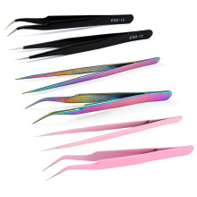 스테인레스 스틸 팔꿈치 핀셋 네일 도구 접목 심기 눈썹 펜치 공장 도매 직선 팔꿈치 블랙 핑크