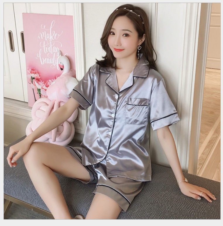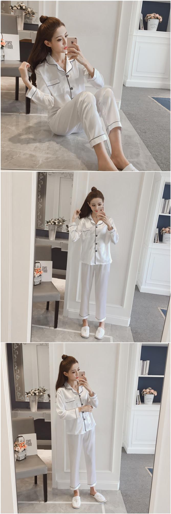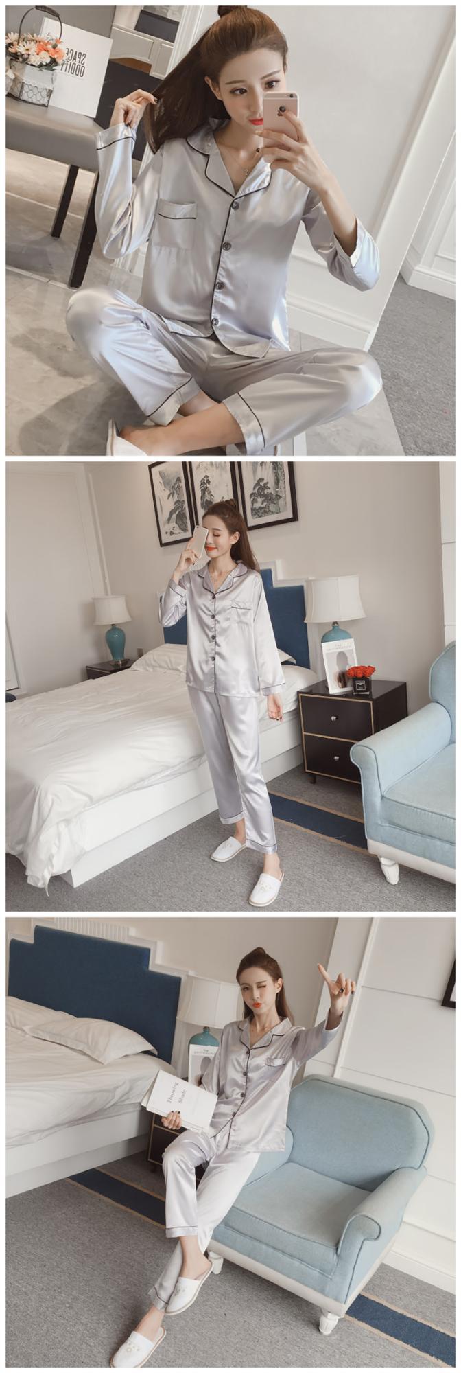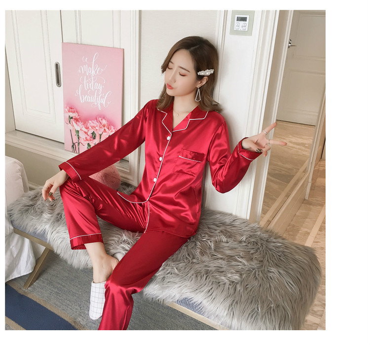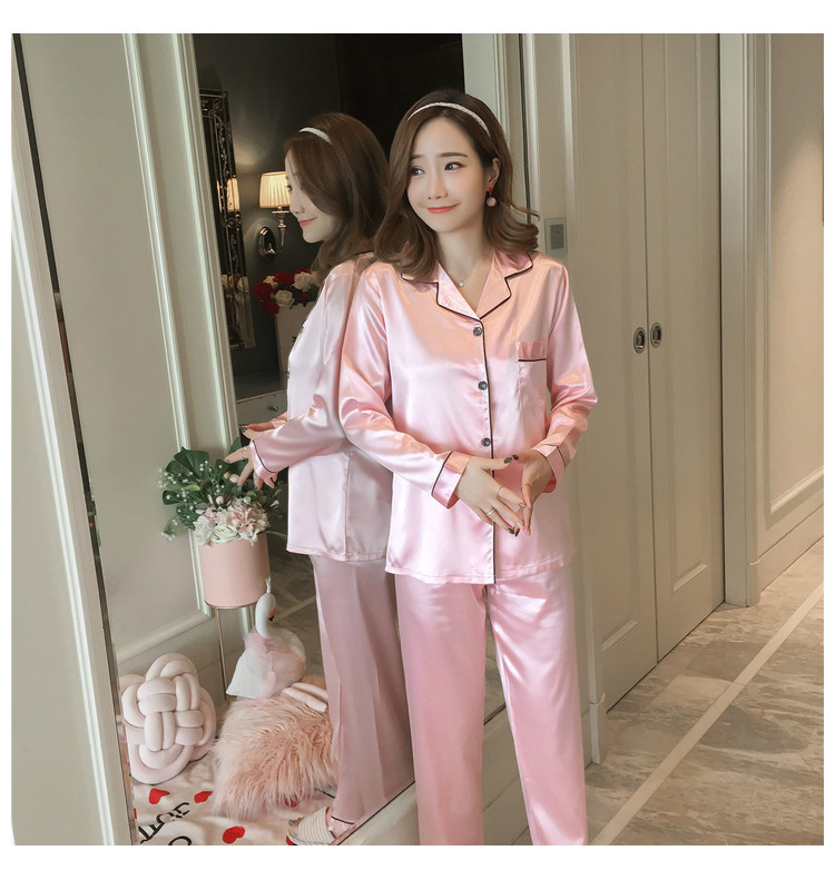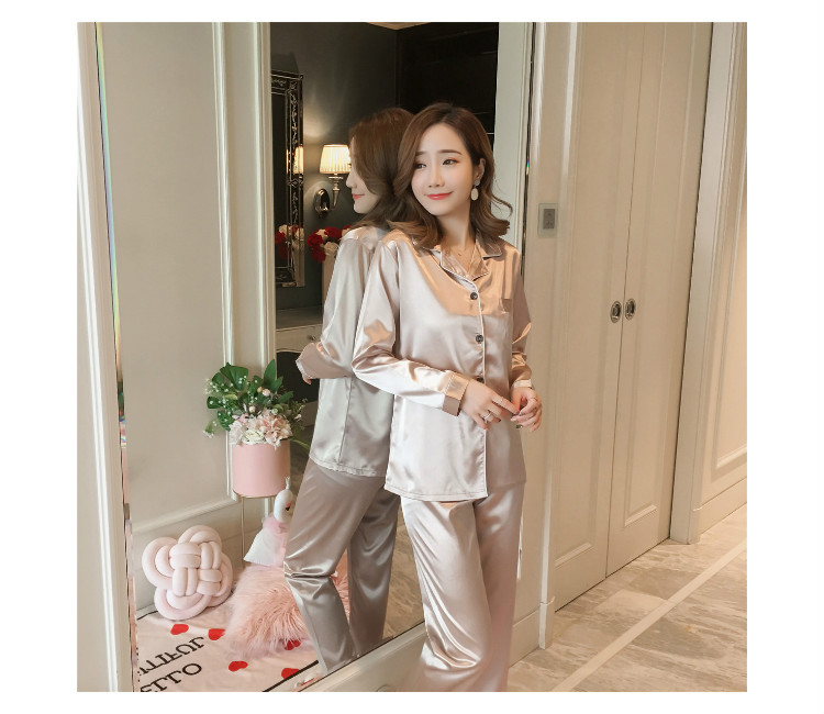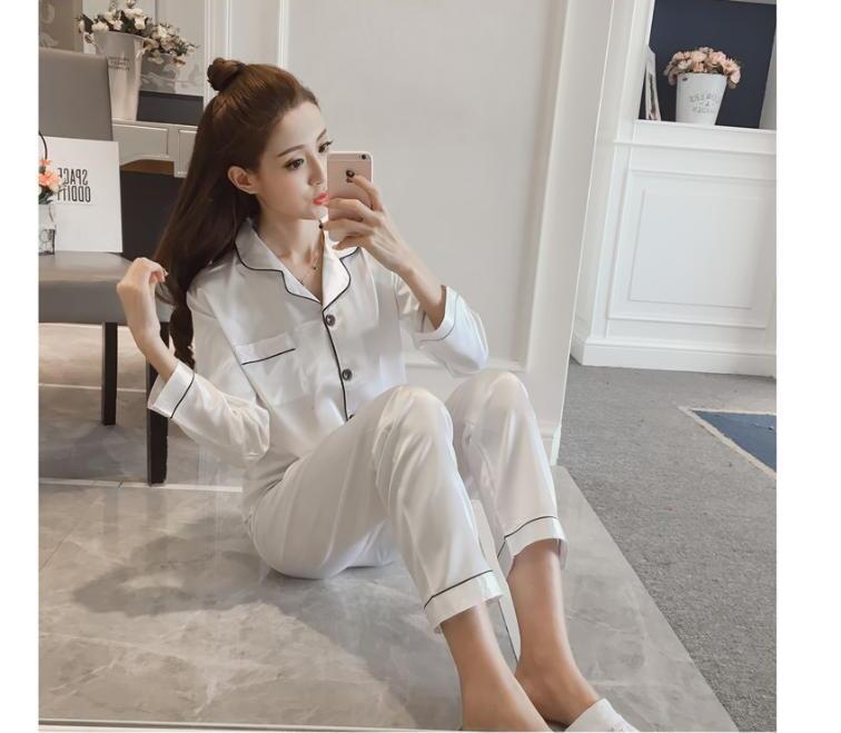 2023 아이스 실크 파자마 여성용 통통한 소녀 대형 한국 스타일 봄과 가을 긴 소매 바지 여성용 잠옷 홈 의류 세트스토어 가기