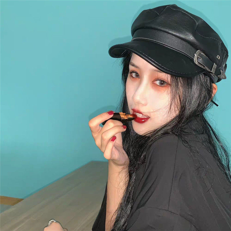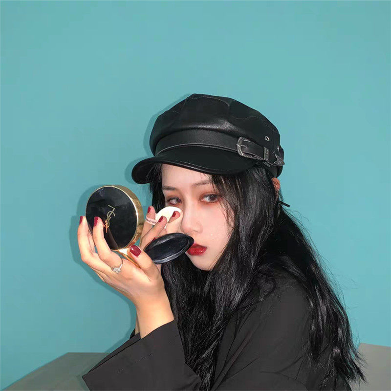 가죽 사이버 연예인 팔각형 모자 영국 벨트 버클 뉴스 보이 모자 가을과 겨울 한국 남성과 여성을위한 모든 경기 모자 화가 모자스토어 가기