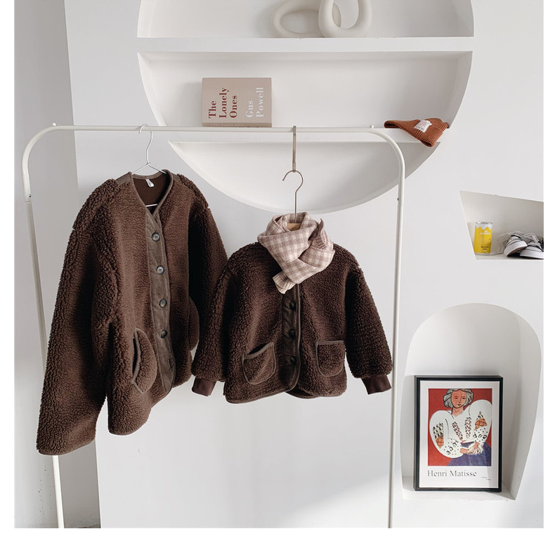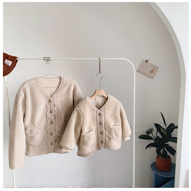 아동 스웨터 한국 아동복 도매 2023 겨울 소년 소녀 lambswool 코트 패딩 부모-자식 면 패딩 옷