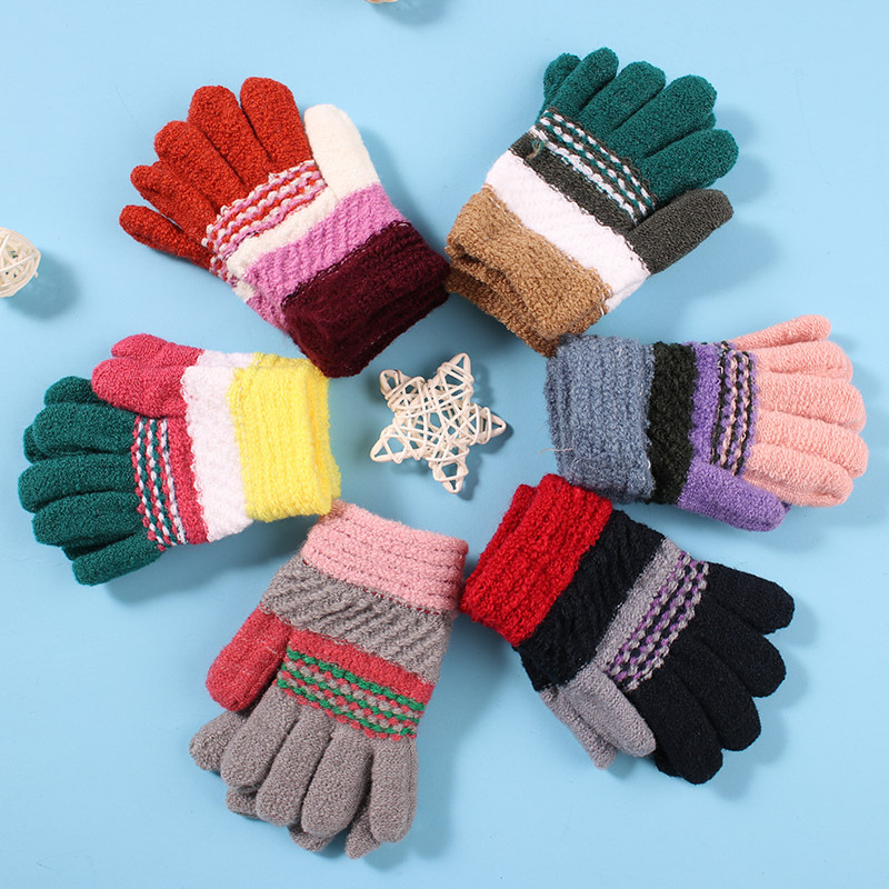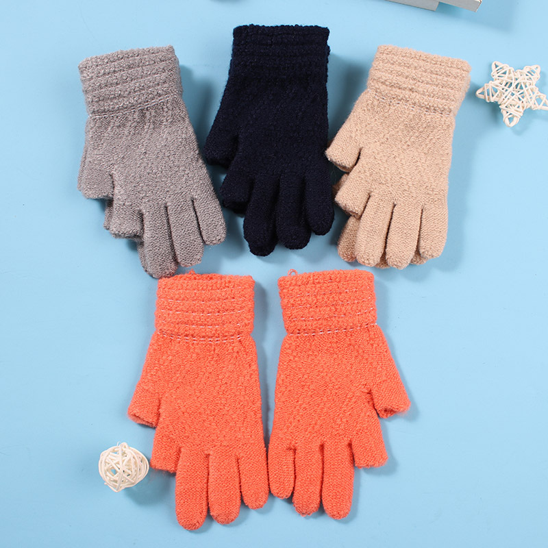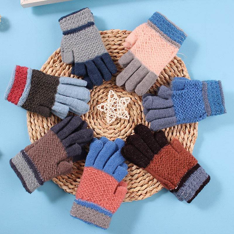 [특가 세일] 겨울 어린이 장갑 니트 남녀공용 보온 기모 두꺼운 풀핑거 학생 장갑
