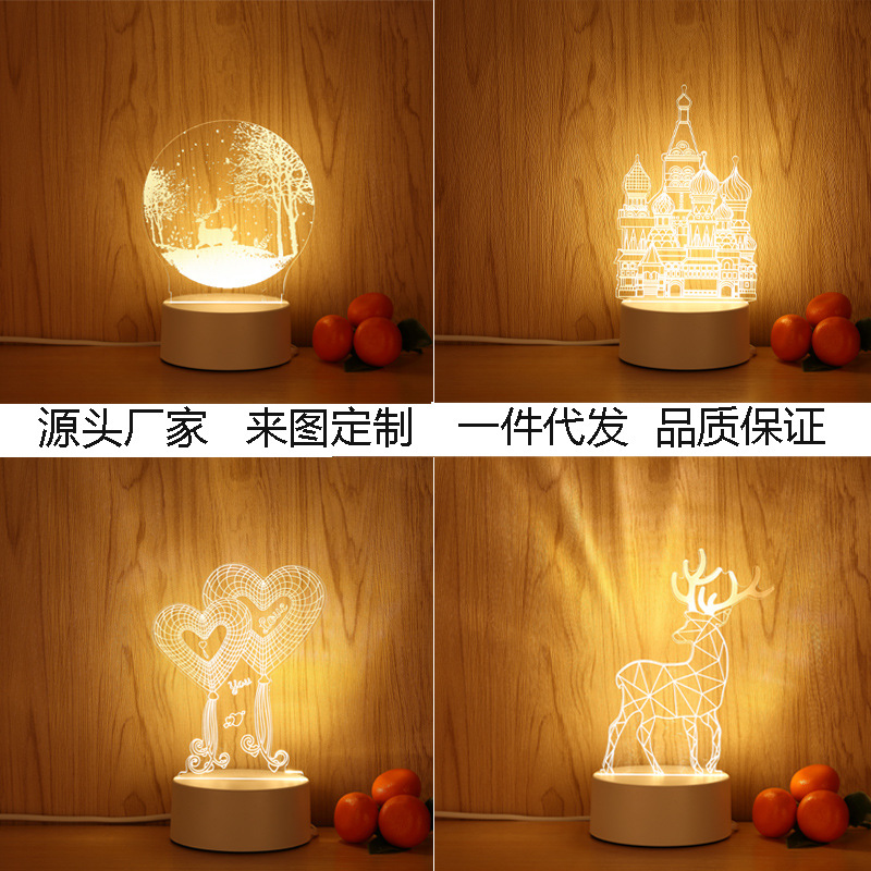 소스 제조 업체 창조적 인 3d 나이트 라이트 usb 3 색 단색 균열 다채로운 원격 제어 필기 로고 선물 책상 램프스토어 가기