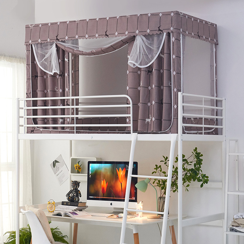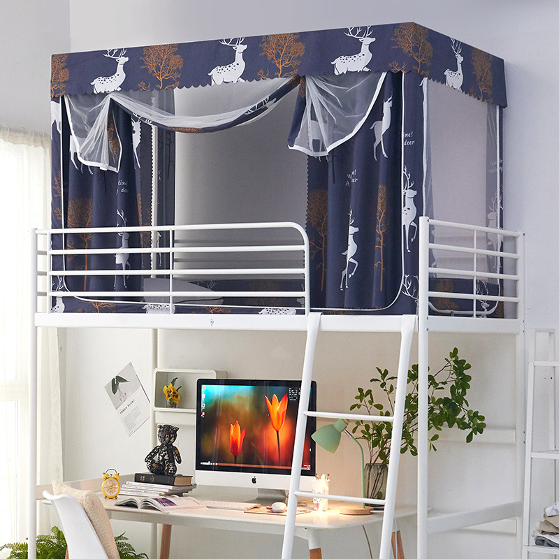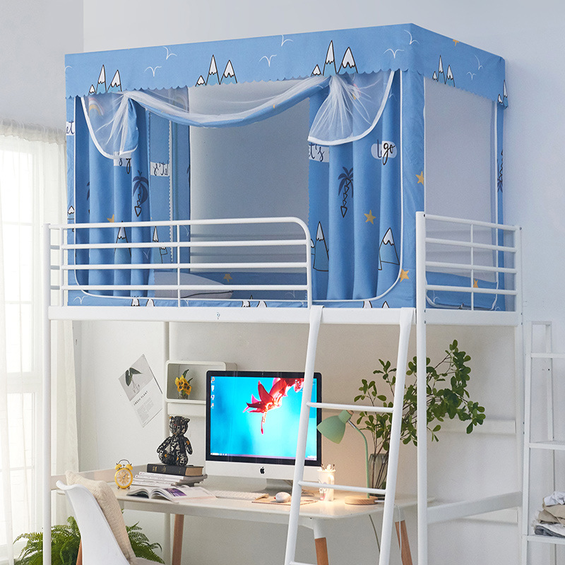 침대 커튼과 모기장이 하나로 된 학생 기숙사 침대 커버, 상하단 침대용, 여성용, 스탠드 포함, 모기 방지 및 통기성스토어 가기