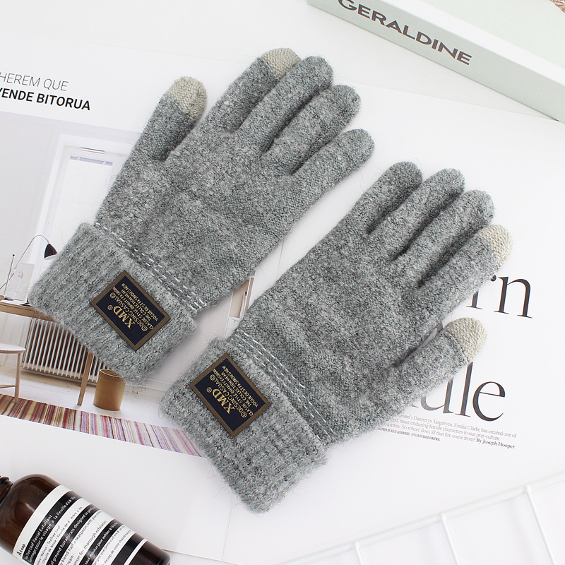 남자의 따뜻한 풀 컬러 울 니트 장갑 터치 스크린 타이핑 손가락 장갑 학생 차가운 세대 머리스토어 가기