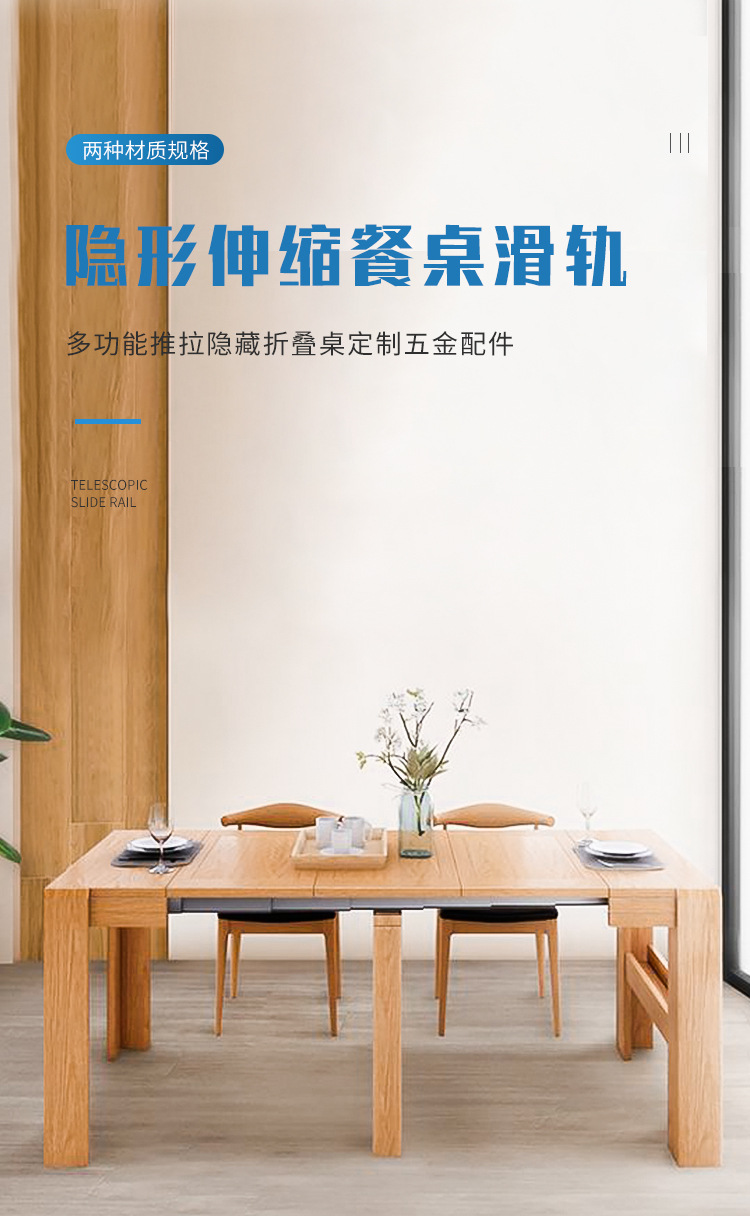 숨겨진 접이식 테이블 가이드 레일 다기능 텔레스코픽 멀티 섹션 플랫 푸시 접이식 하드웨어 액세서리 캐비닛 식탁 슬라이드