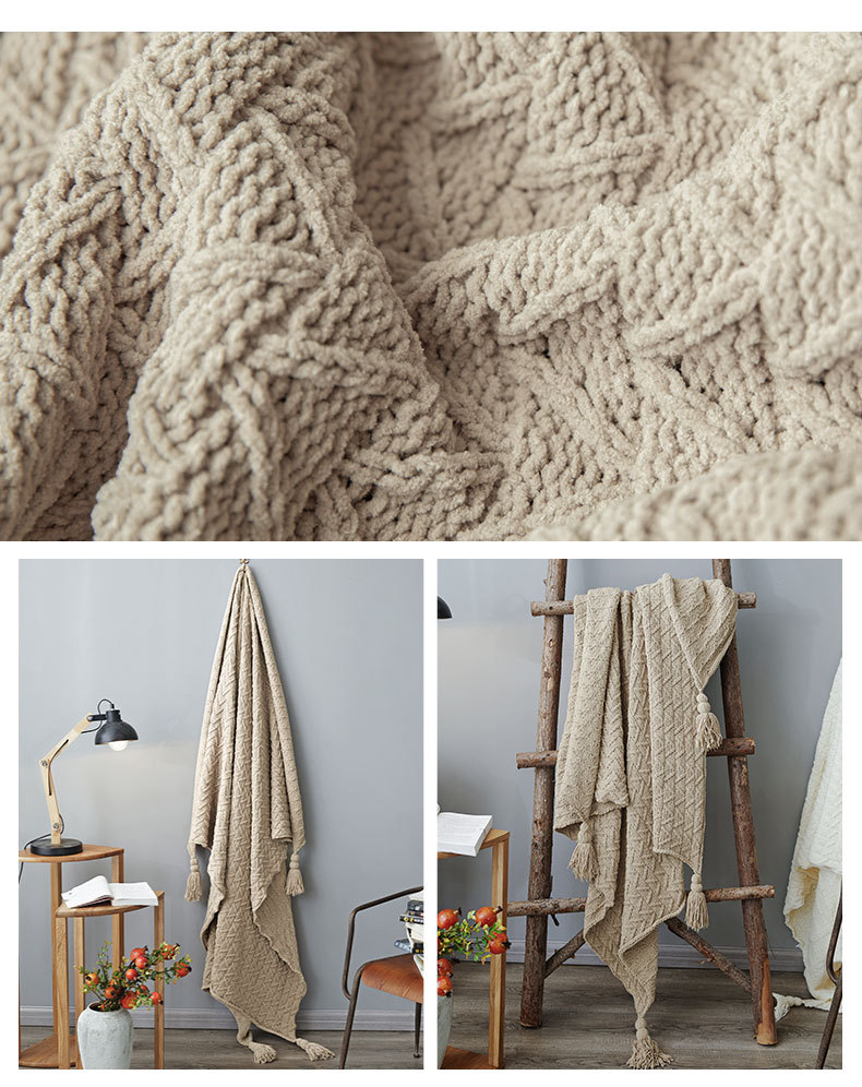 Ruijing 섬유 에이스 새로운 셔닐 북유럽 홈 소프트 디자이너 액세서리 니트 소파 담요
