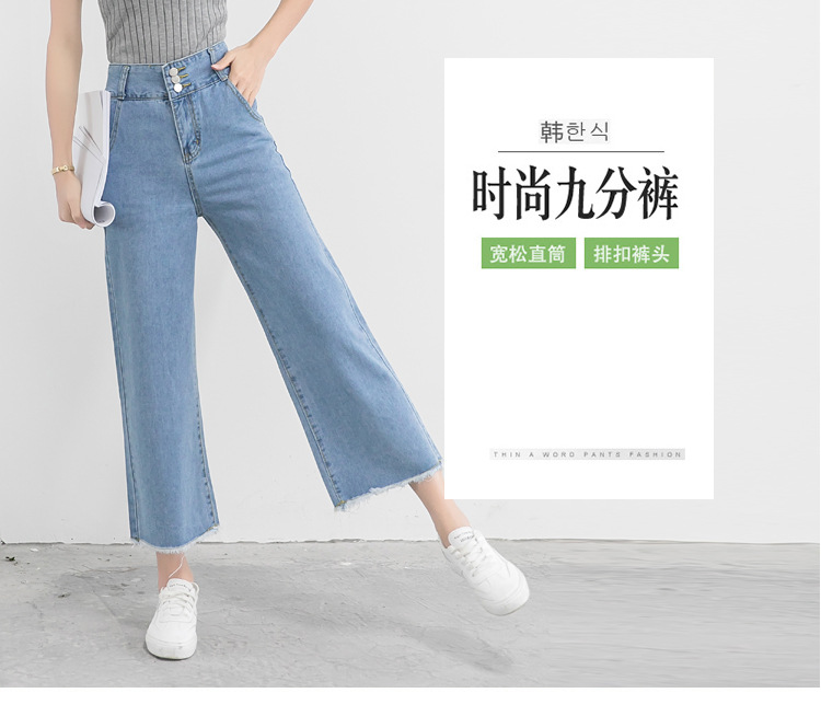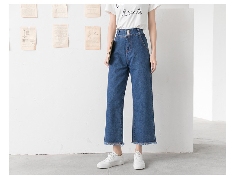 가을 2022 한국판 하이 웨이스트 와이드 레그 청바지 여성 바지 스트레이트 팬츠 느슨한 슬림 타이드 바지 머리카락 세대