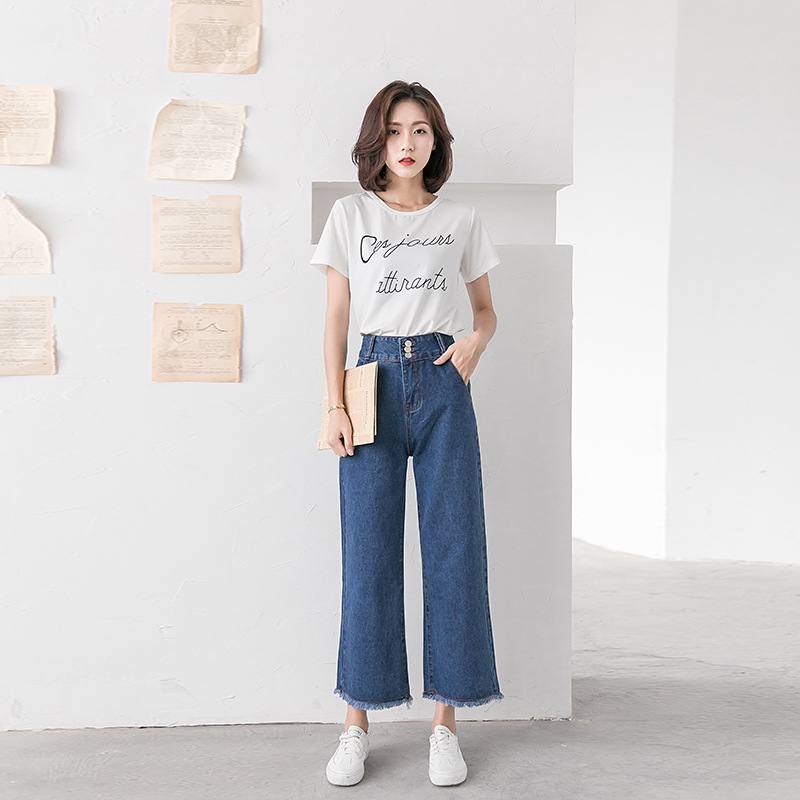가을 2022 한국판 하이 웨이스트 와이드 레그 청바지 여성 바지 스트레이트 팬츠 느슨한 슬림 타이드 바지 머리카락 세대스토어 가기