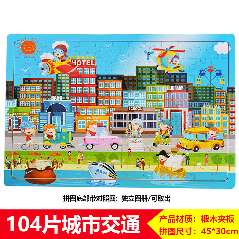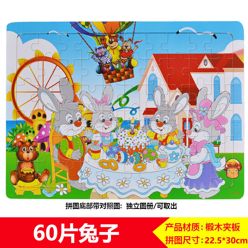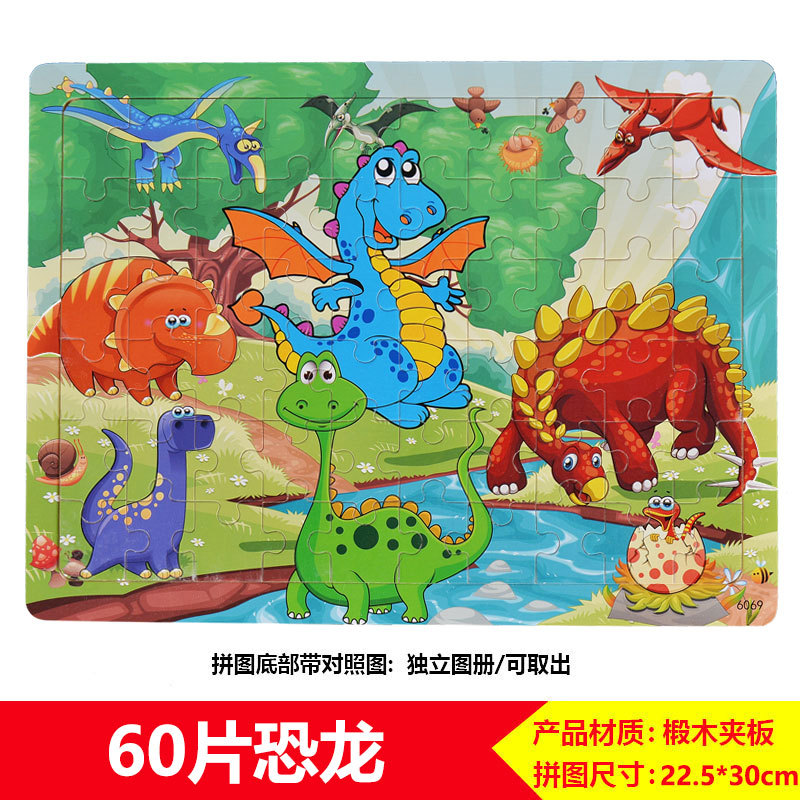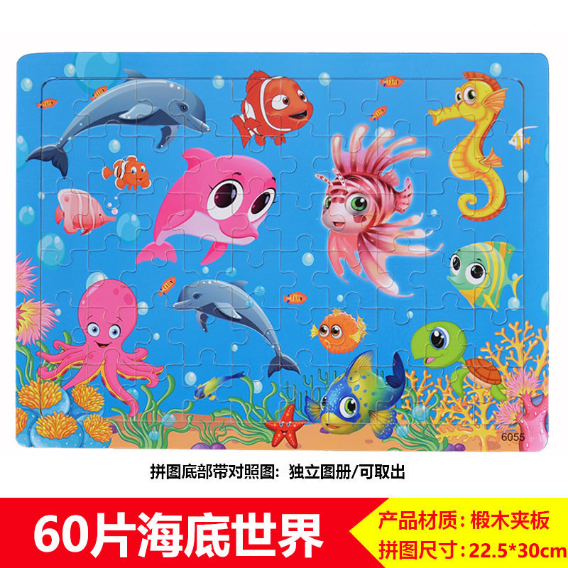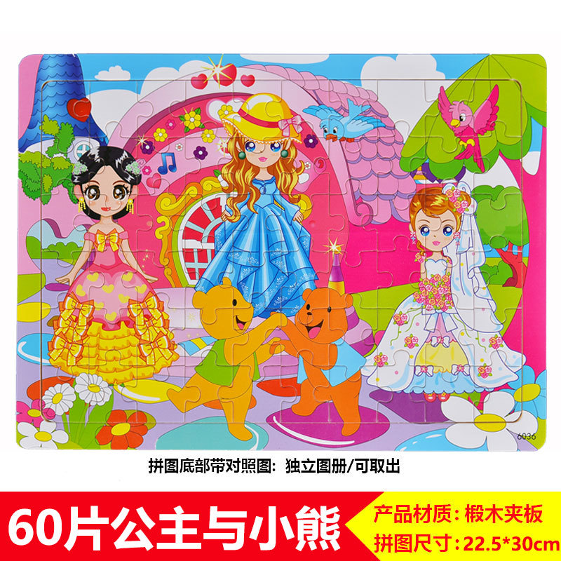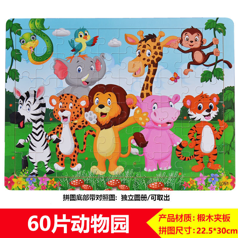 60/100/200 어린이 나무 퍼즐 3-4-6-8 세 소년 소녀 교육 입체 평면 만화 장난감 5스토어 가기