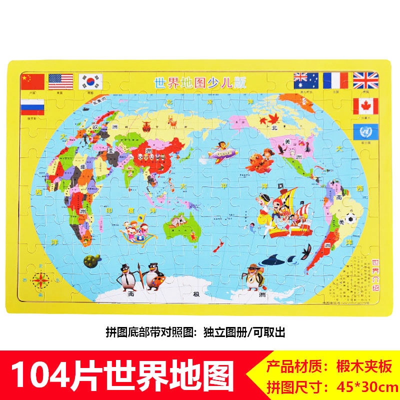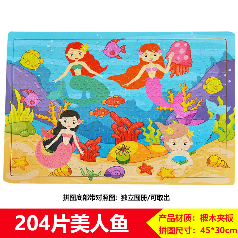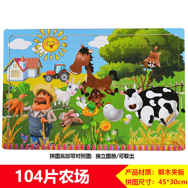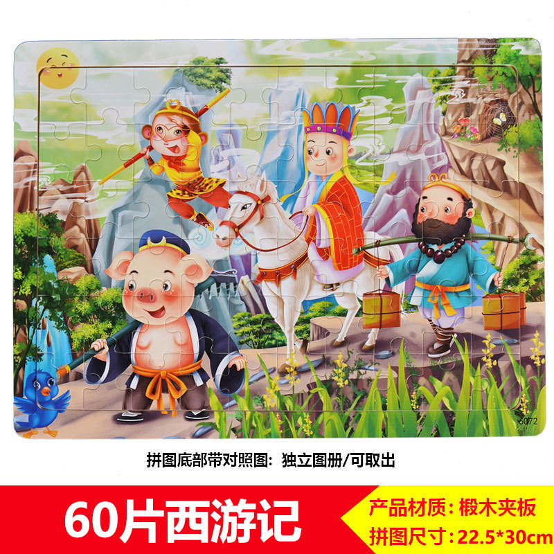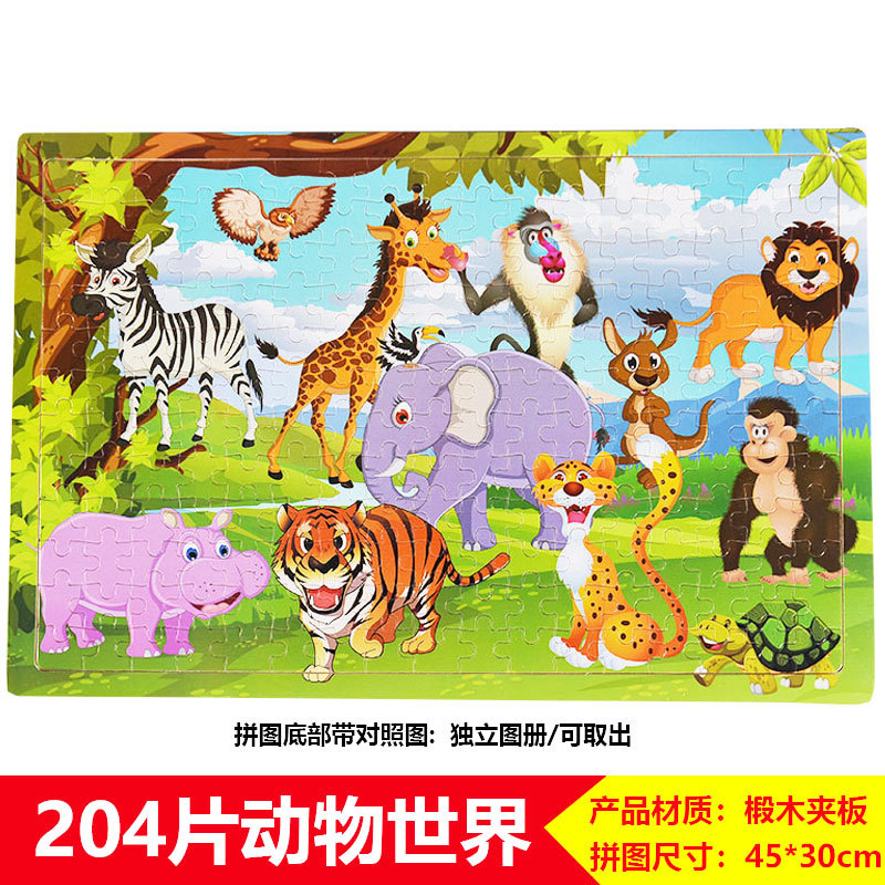 60/100/200 어린이 나무 퍼즐 3-4-6-8 세 소년 소녀 교육 입체 평면 만화 장난감 5