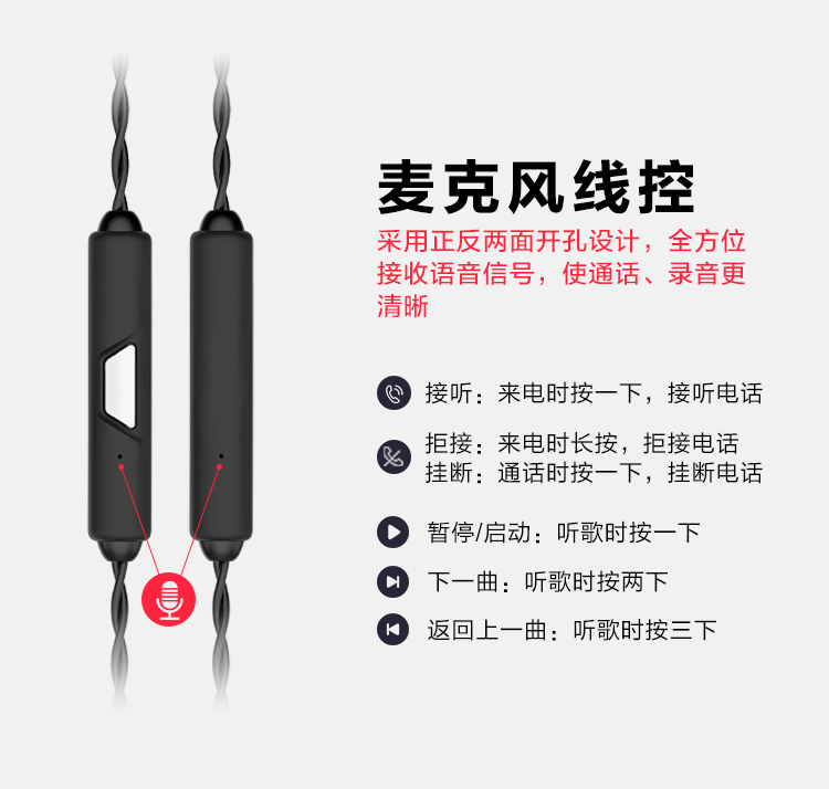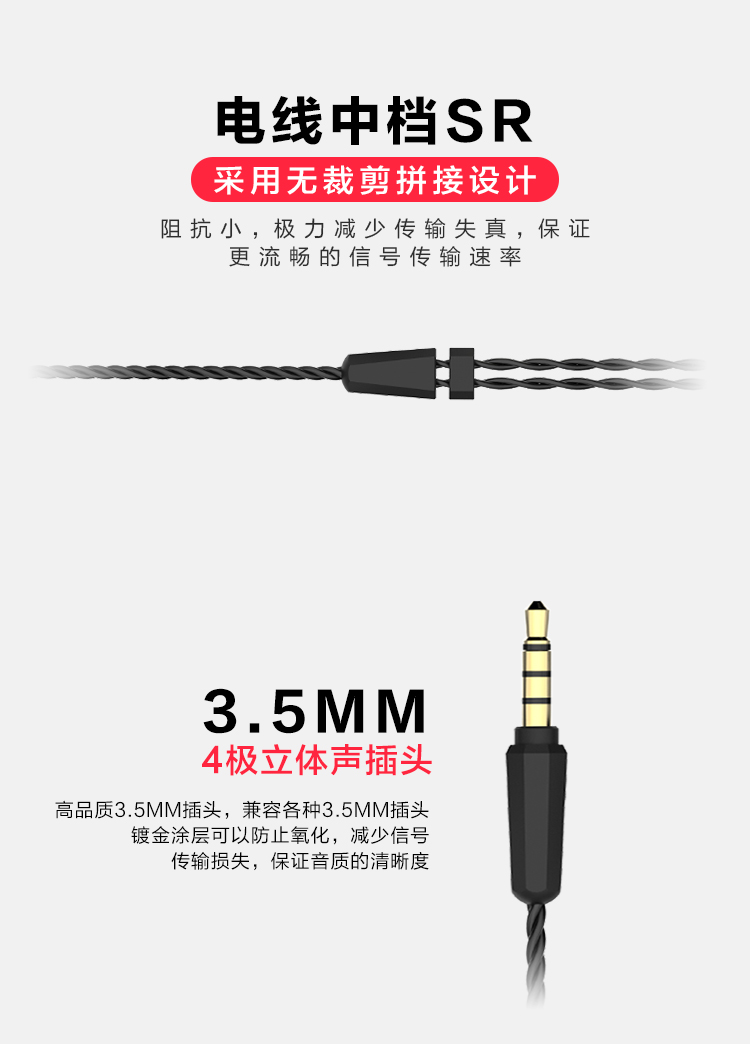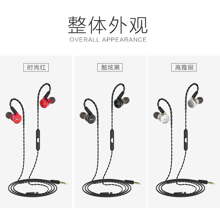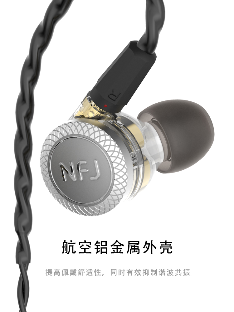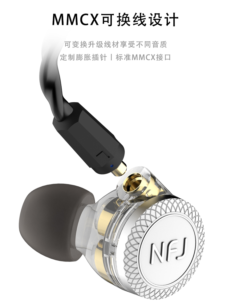 NFJ 三动圈耳机 (线控入耳式)耳机苹果安卓通用 耳机采用mmcx接口设计,可变换升级线材。爱好音乐的你可随意变换不同材质的升级线,享受不一样的音乐乐趣。