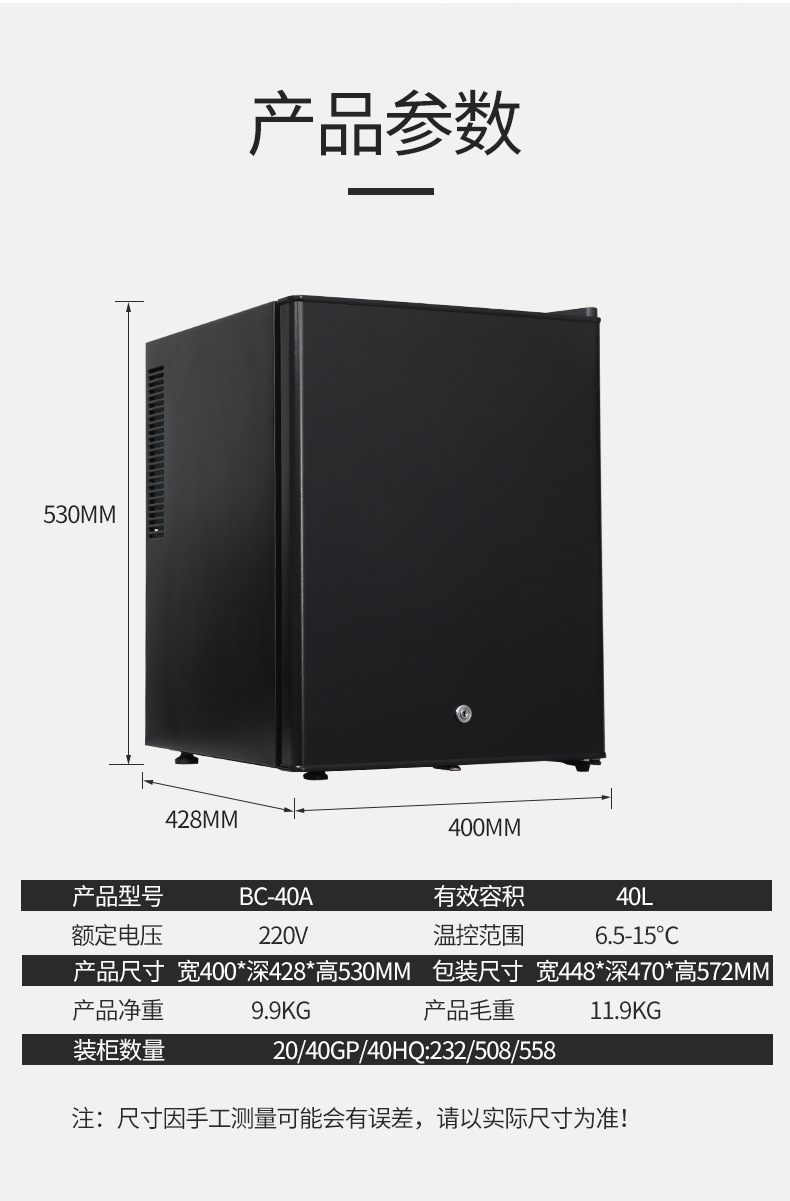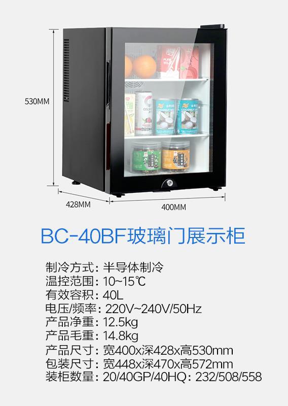 외국 무역 수출용 Wennermei BC-40BF 40리터 유리문 호텔 객실용 단문형 소형 냉장고