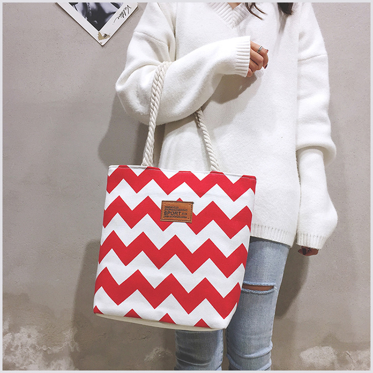 크로스보더 캔버스 여성 가방, 대마끈 물결무늬 캔버스 가방, 한국형 대용량 숄더백, 패셔너블한 통근 가방, 가벼운 무게스토어 가기