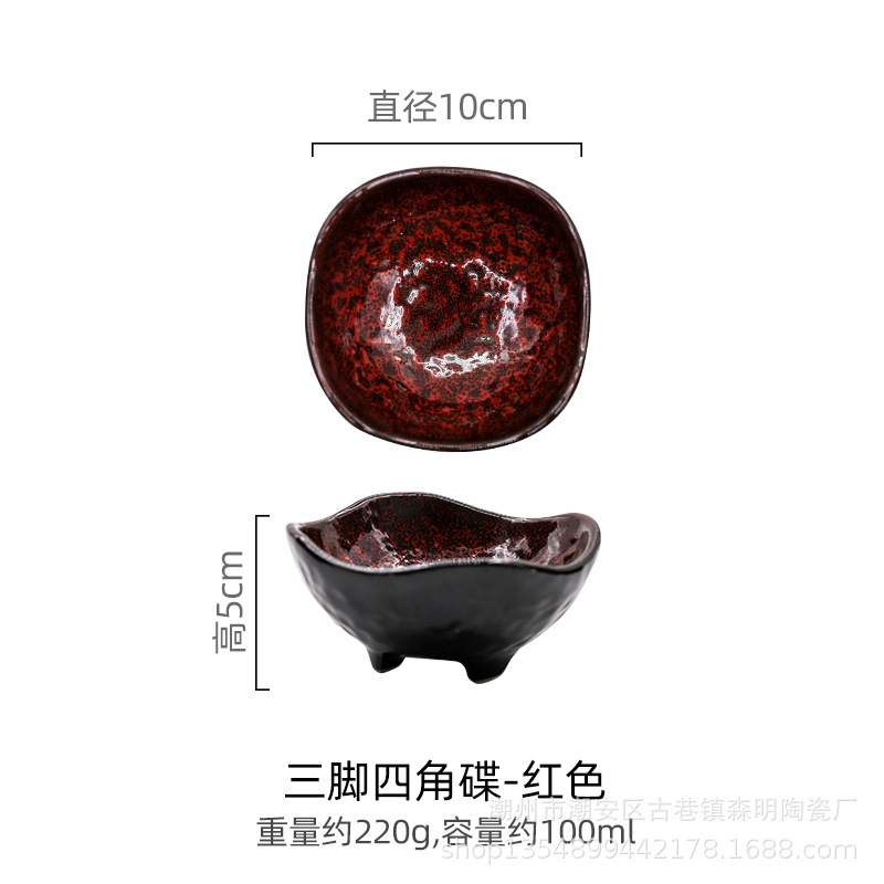 • 삼족사각접시-레드