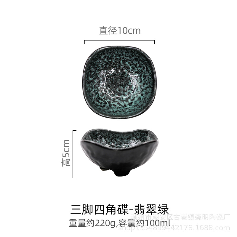 • 삼족사각접시-에메랄드그린