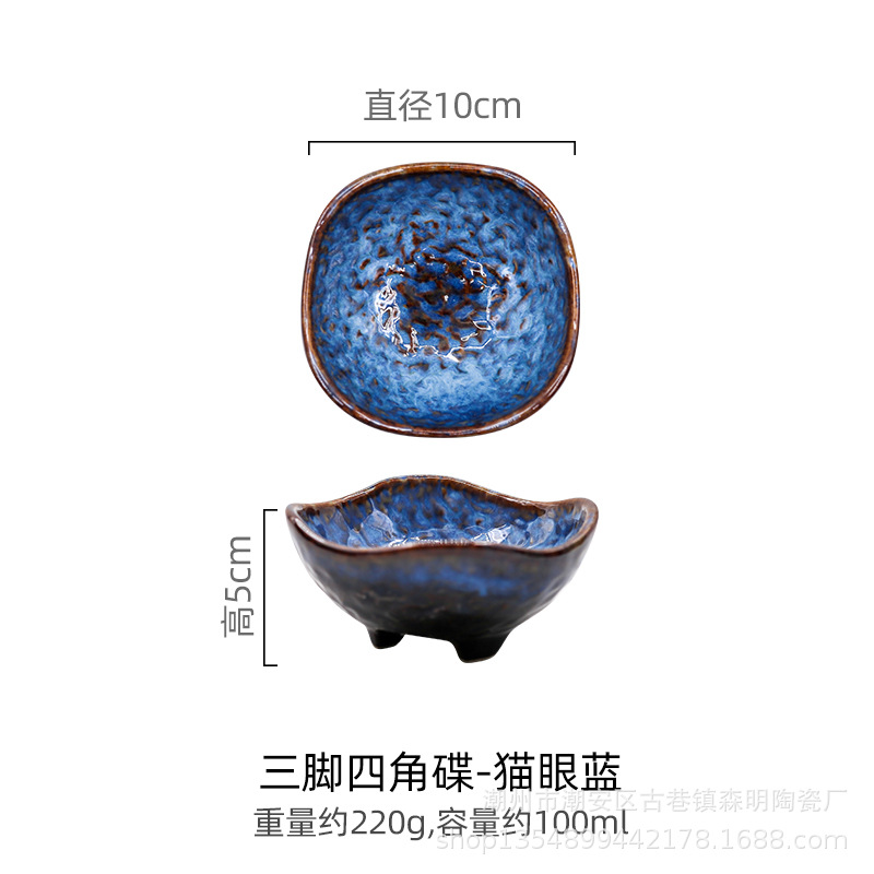 • 삼족사각접시-캣아이블루