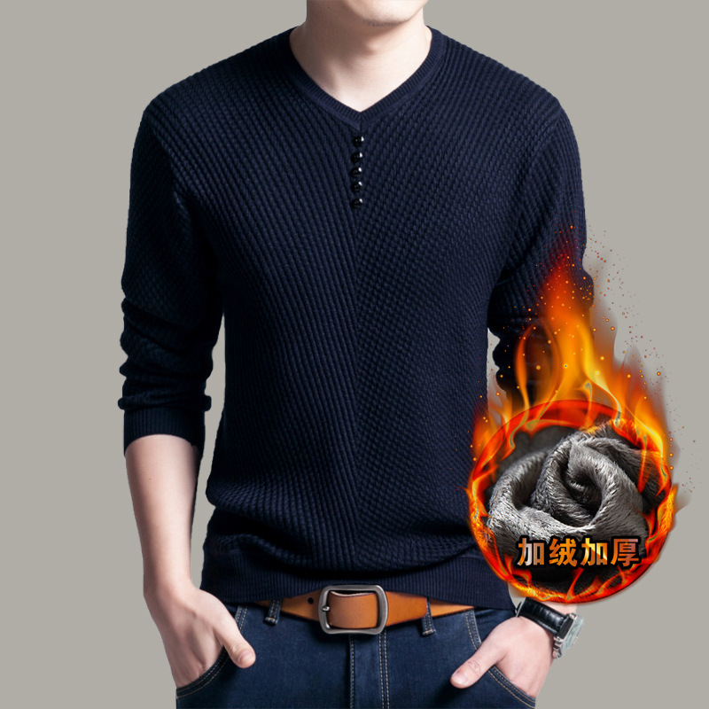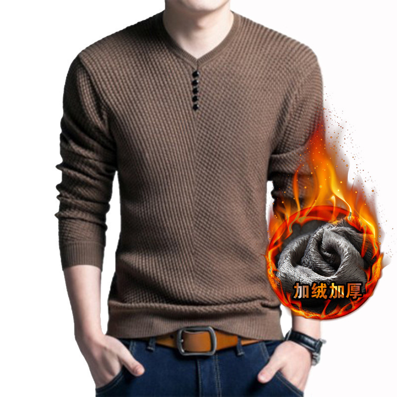 캐주얼 청소년 기모 두꺼운 단색 스웨터 V-넥 니트 스웨터 풀오버 티셔츠 기본 셔츠 대외 무역 플러스 사이즈 남성복스토어 가기