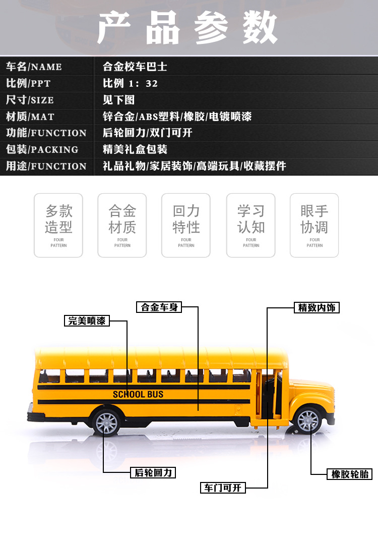 크로스보더 1:70 신형 합금 캠퍼스 버스 후렉션 자동차 모형 어린이 장난감 자동차 장식 소년용 장난감 자동차