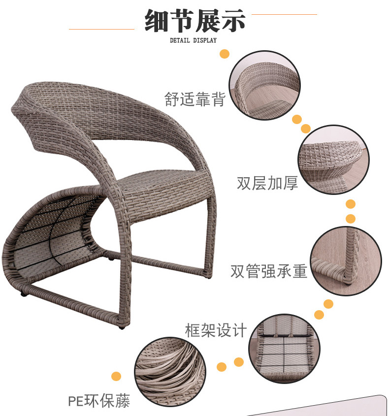 등나무 의자 야외 레저 테이블과 의자 안뜰 발코니 간단한 테이블과 의자 3 피스 세트 야외 가구 등나무 라운드 테이블