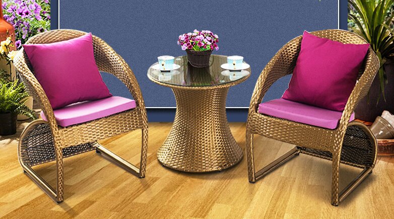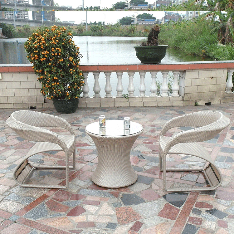 등나무 의자 야외 레저 테이블과 의자 안뜰 발코니 간단한 테이블과 의자 3 피스 세트 야외 가구 등나무 라운드 테이블스토어 가기