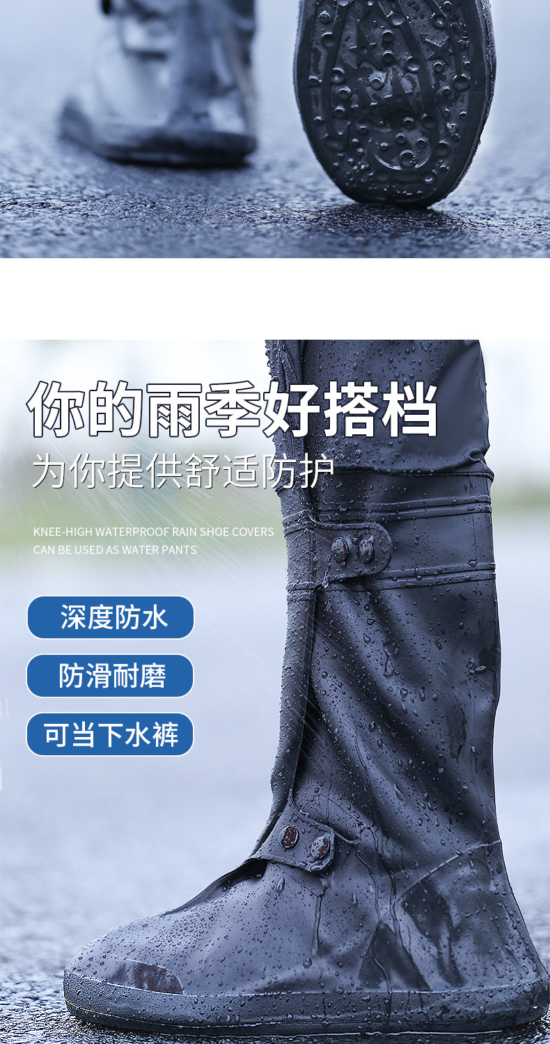 미끄럼 방지 두꺼운 내마모성 무릎 높이 레인 슈즈 커버 비오는 날씨 방수 남성 및 여성 라이딩 워터 팬츠 레인 팬츠 크로스 보더 헤어 세대스토어 가기