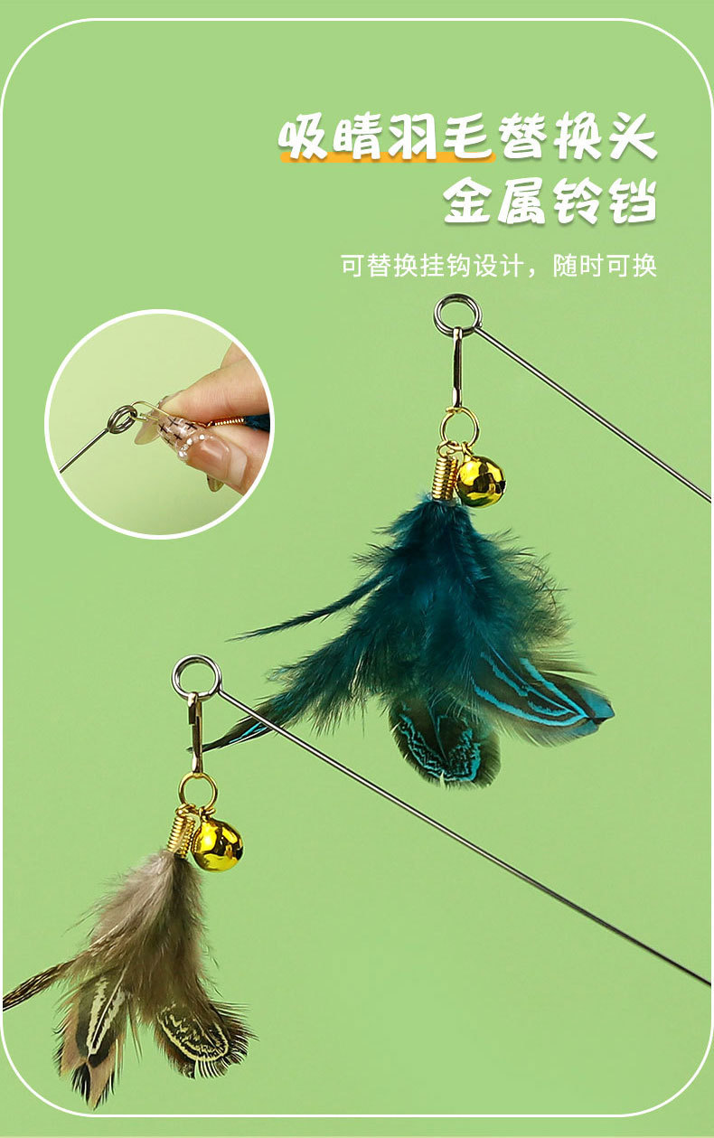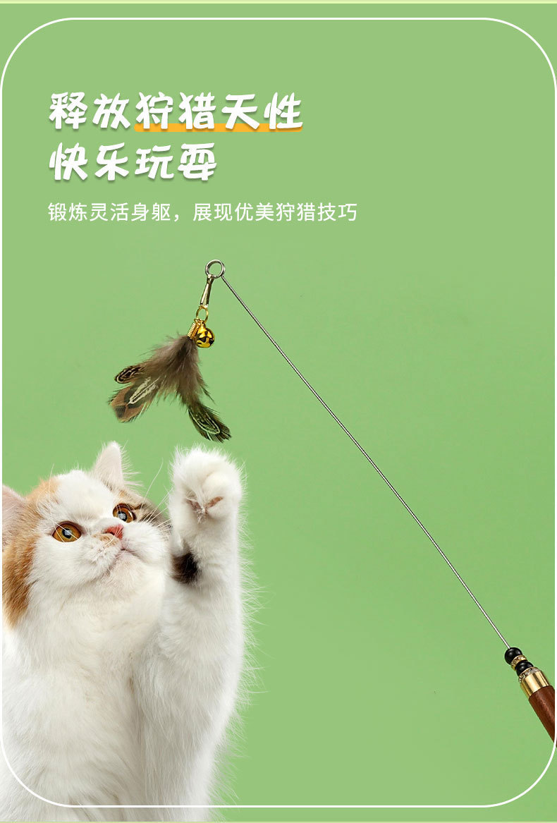 Hartley 애완 동물 장난감 페르시 빨간 백단향 라운드 핸들 강철 와이어 꿩 깃털 재미있는 고양이 스틱 애완 동물 용품 6