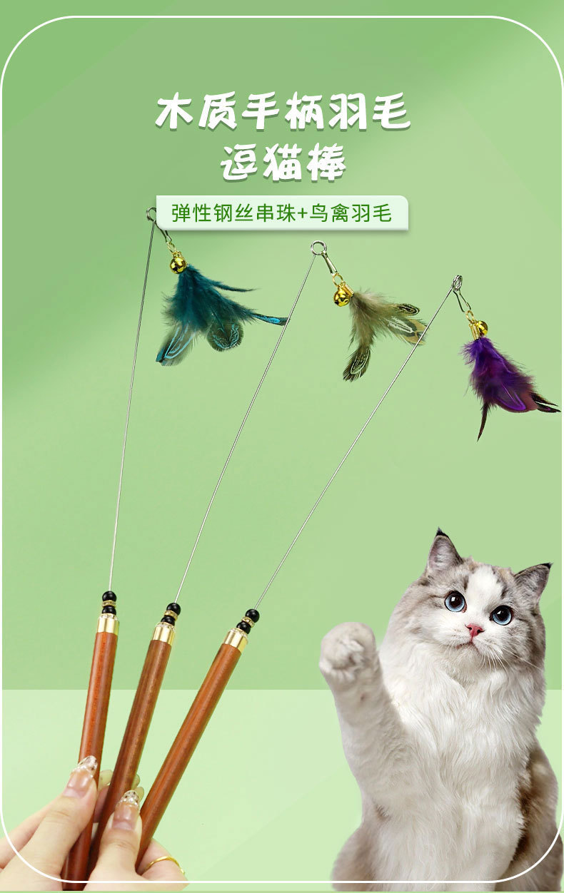 Hartley 애완 동물 장난감 페르시 빨간 백단향 라운드 핸들 강철 와이어 꿩 깃털 재미있는 고양이 스틱 애완 동물 용품 6스토어 가기