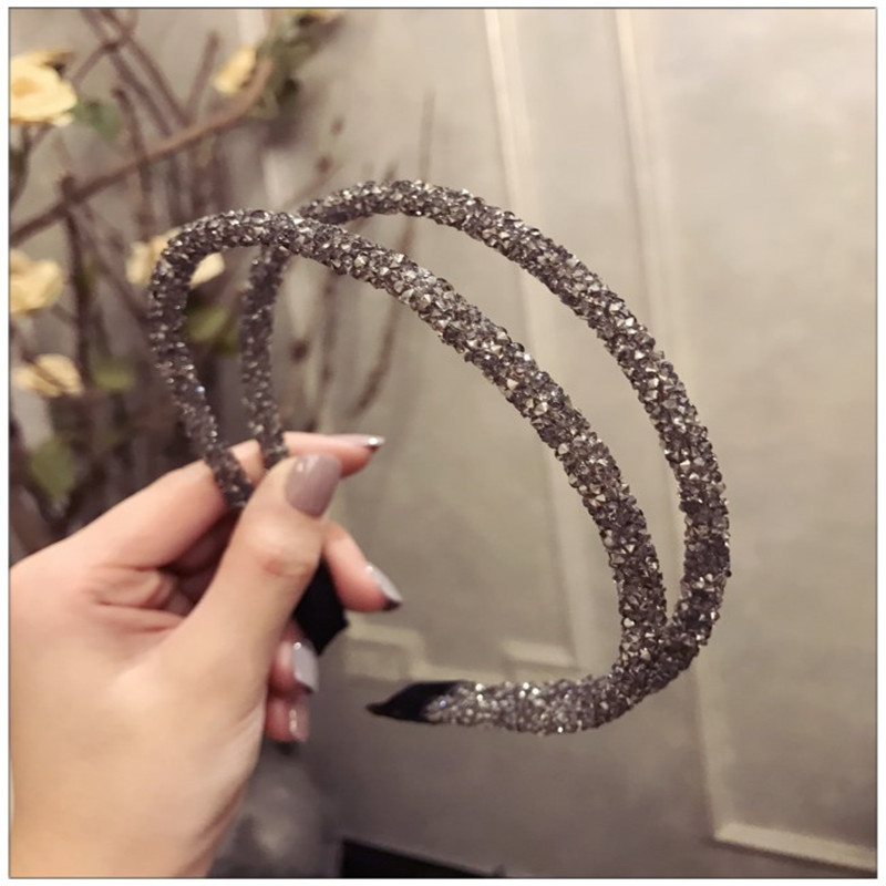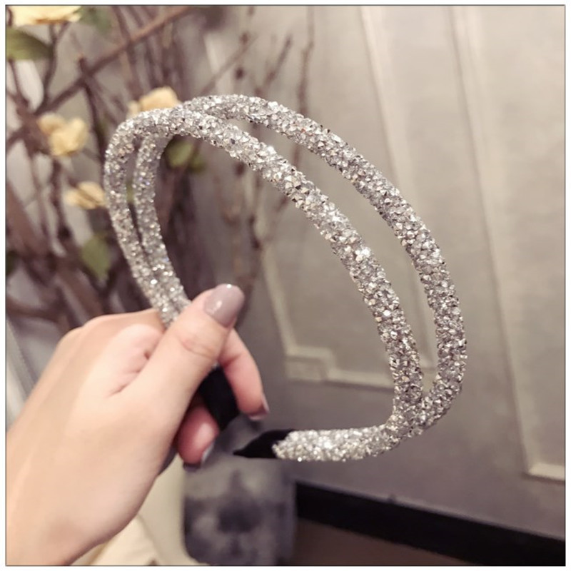 한국 여자 새 도착 핸드메이드 다이아몬드 슈퍼 플래시 링 크리스탈 얇은 가장자리 머리띠 여성용 간단한 머리띠 더블