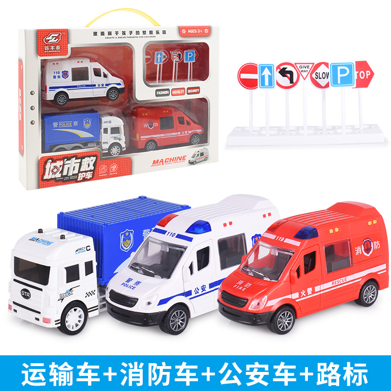 국경을 넘는 인력 구동 자동차 세트 어린이용 굴착기 장난감 소방차 구급차 남자아이 선물스토어 가기