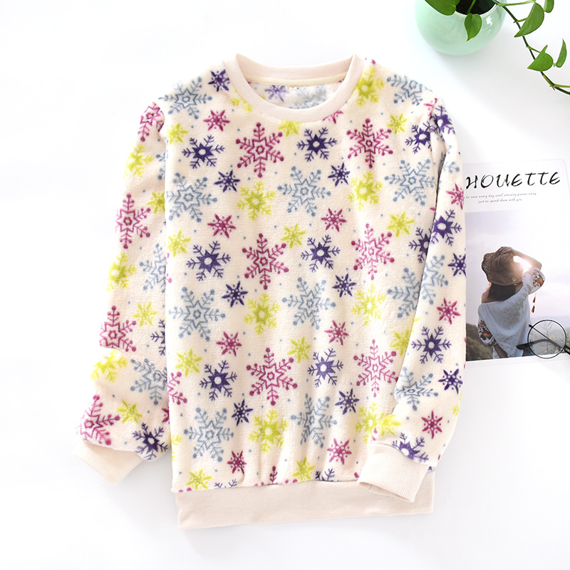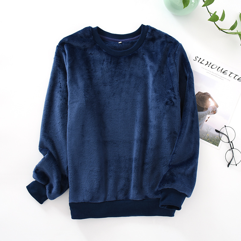 겨울 플란넬 커플 잠옷 싱글 피스 탑 남성과 여성의 긴팔 풀오버 두꺼운 따뜻한 산호 양털 가정 옷
