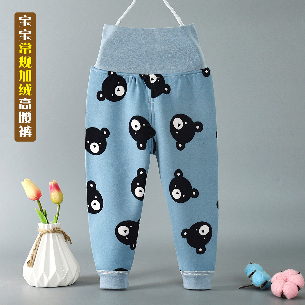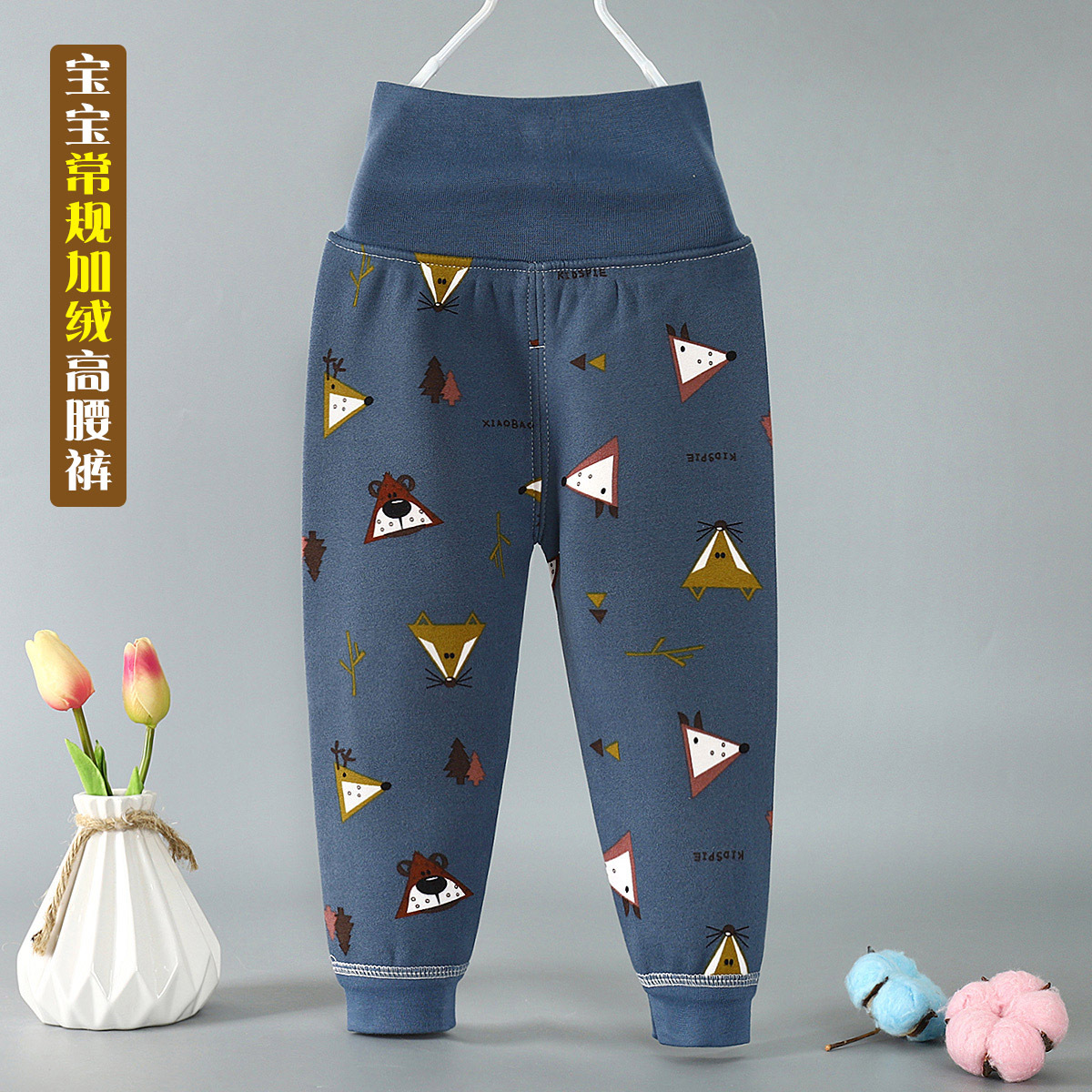 아기의 두꺼운 긴 존스 따뜻한 하이 웨이스트 배꼽 바지 어린이 따뜻한 바지 싱글 긴 존스 기모 아기 바지 겨울