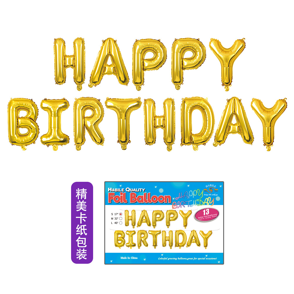 17inch 생일 축하해요 HAPPY BIRTHDAY 영어 알파벳 알루미늄 호일 풍선 미국판 슬림 바디 세트스토어 가기
