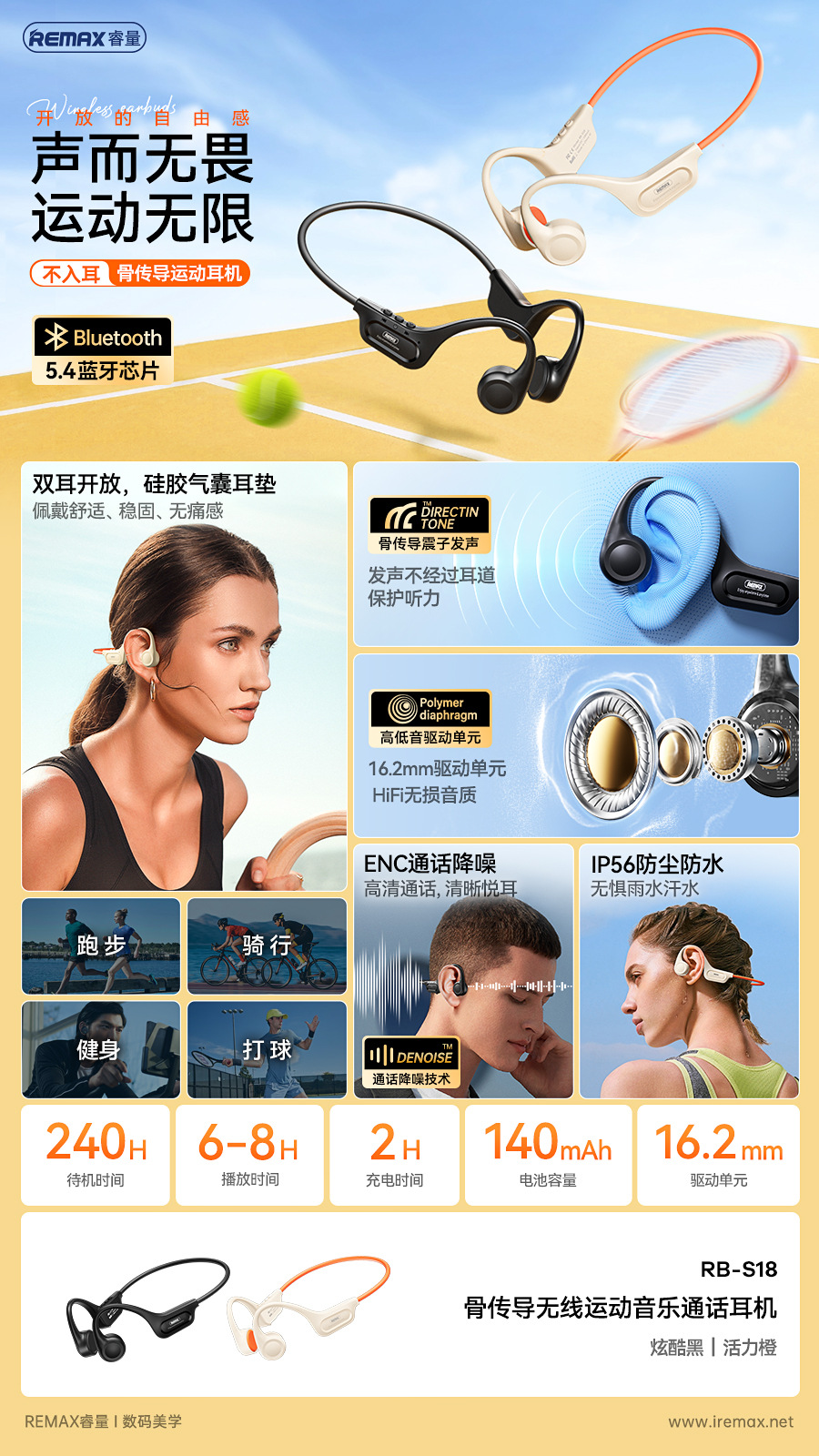 REMAX Ruiyuan ENC 소음 감소 뼈 전도 방수 무선 스포츠 HIFI 무손실 음악 통화 헤드셋 RB-S18
