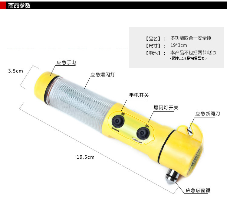 汽车安全锤 四合一救生锤 逃生锤手电筒应急灯 多功能安全锤