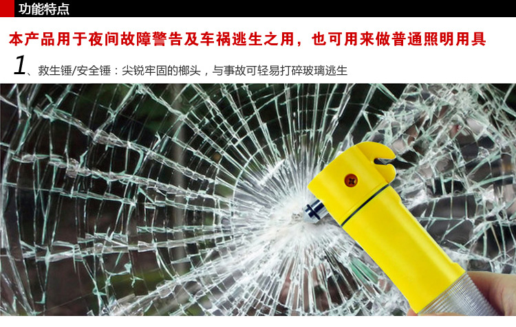 用于夜间故障警告及车祸逃生之用,也可以用来做为普通照明用具。有车族,精美而实用,也许平时一次也用不上,但万一需要时,它可能就是那救命的