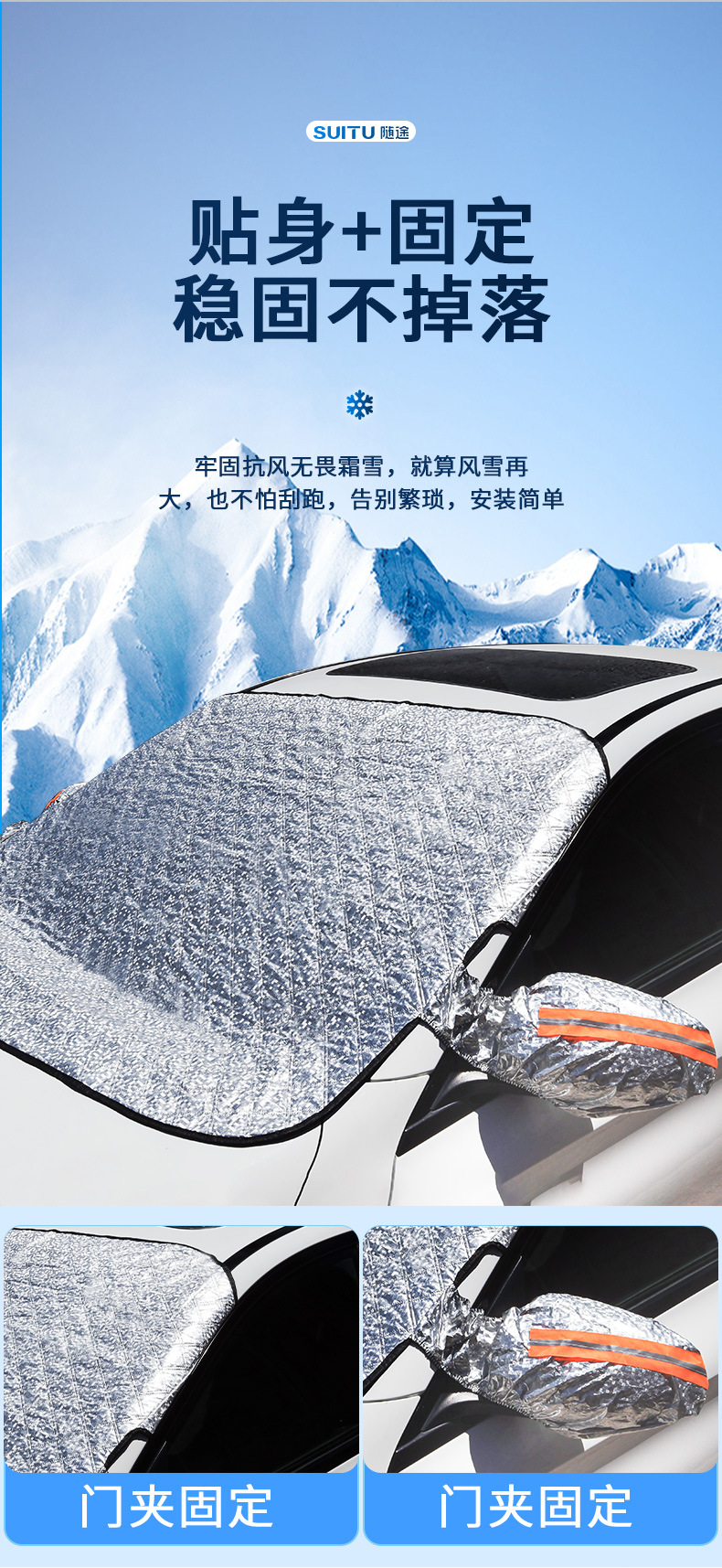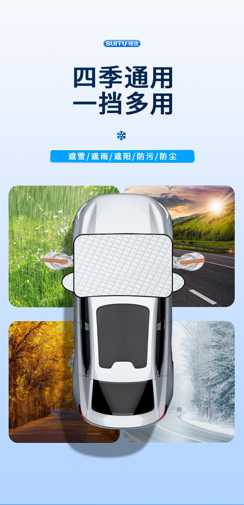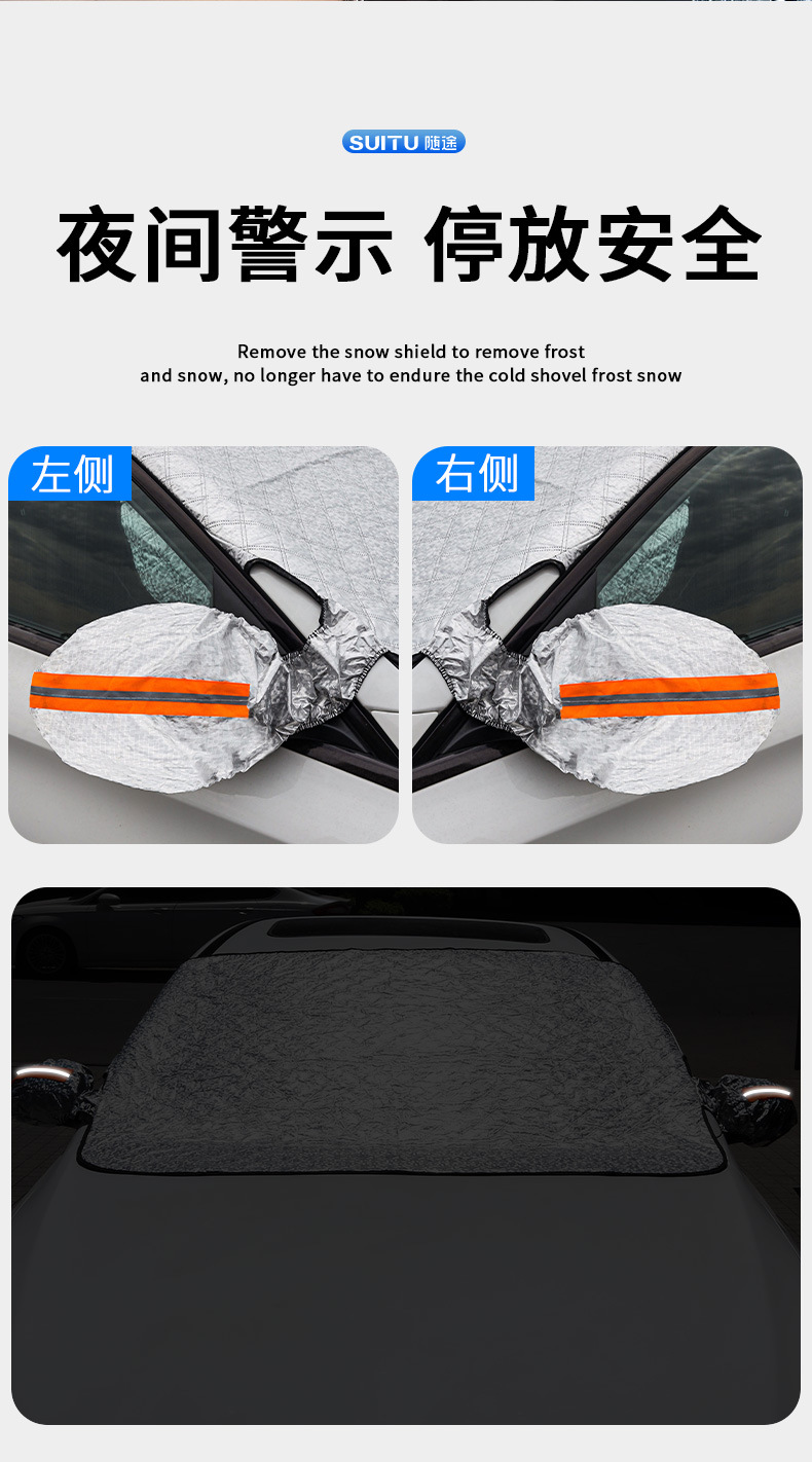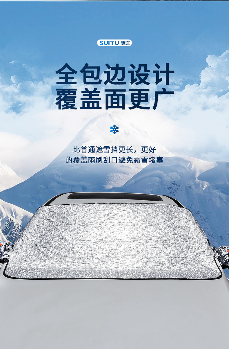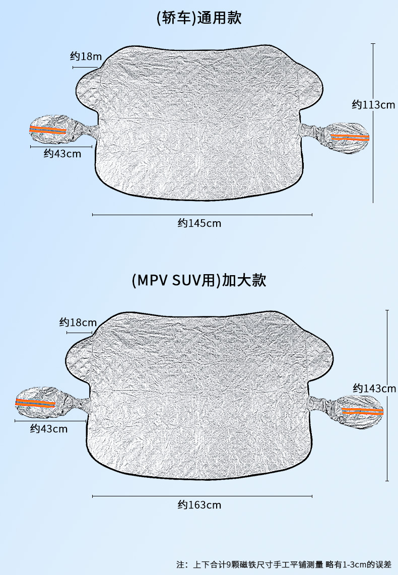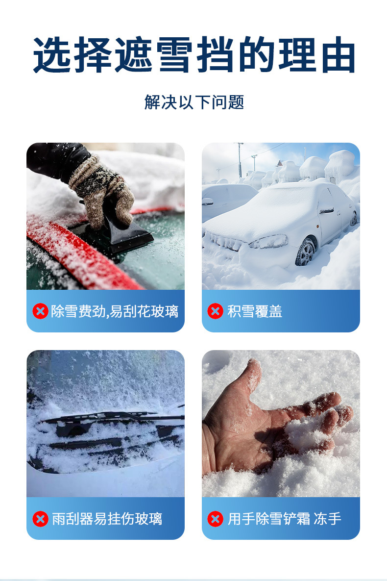【产品名称】:通用型冬季雪挡防雪防霜汽车前挡玻璃遮阳挡防晒半车衣车罩