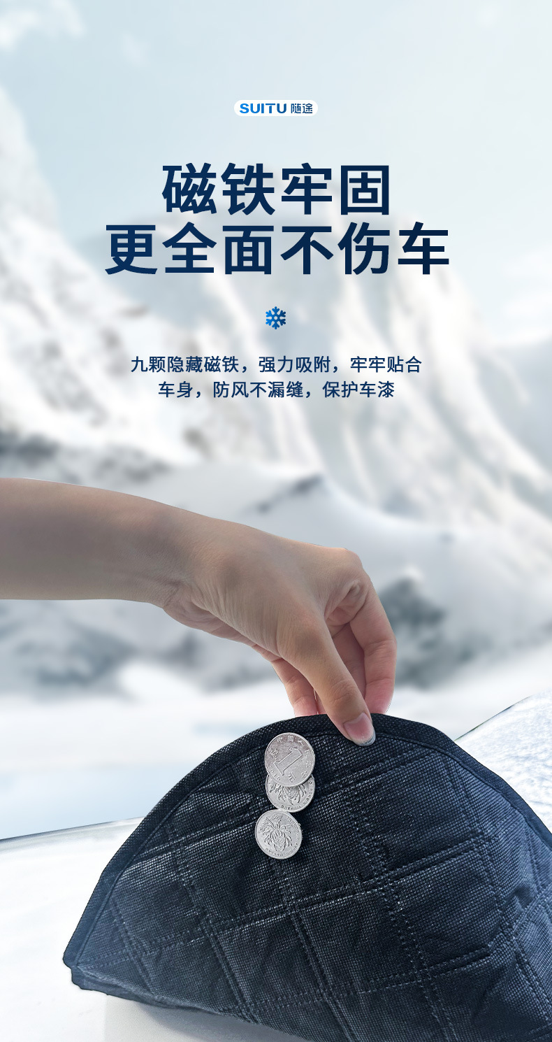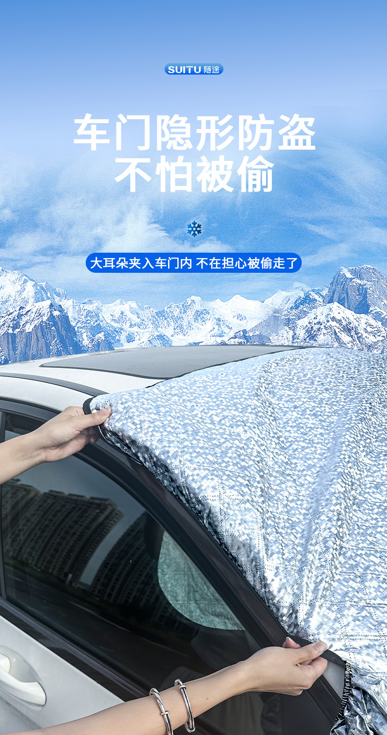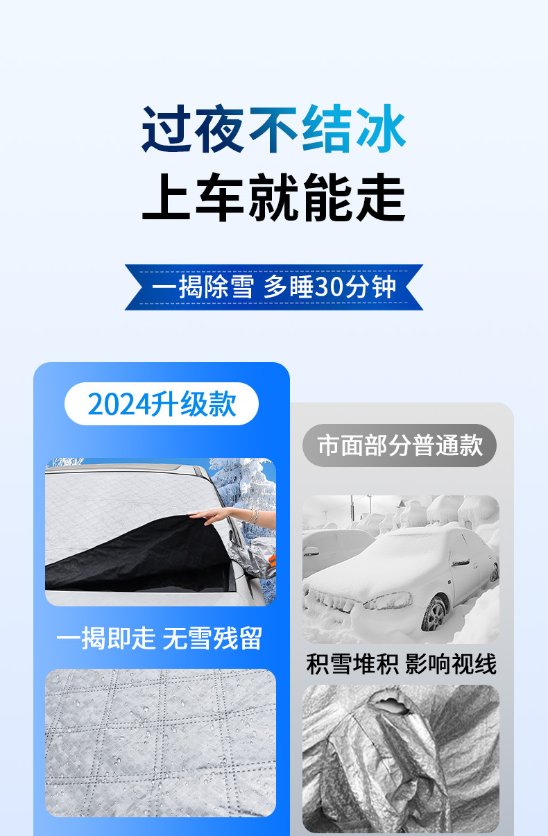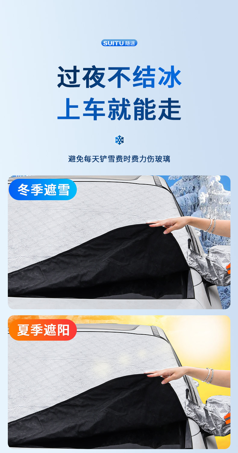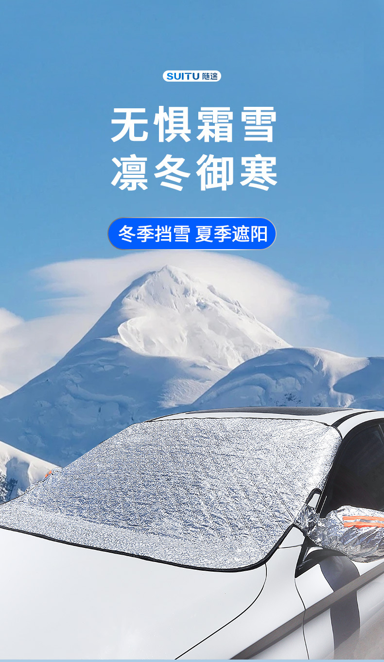 【产品名称】:通用型冬季雪挡防雪防霜汽车前挡玻璃遮阳挡防晒半车衣车罩