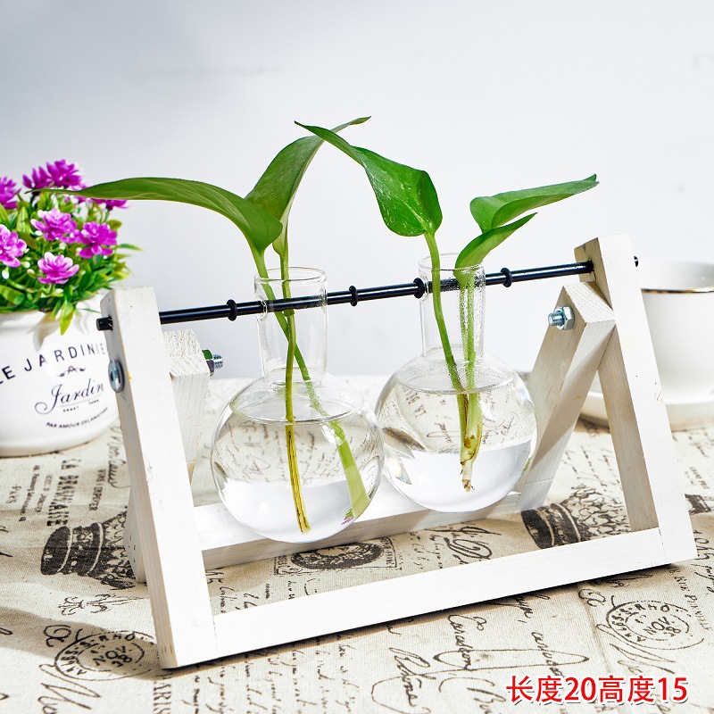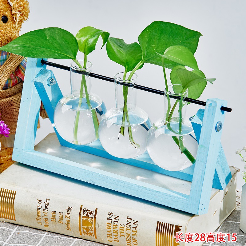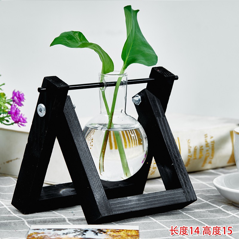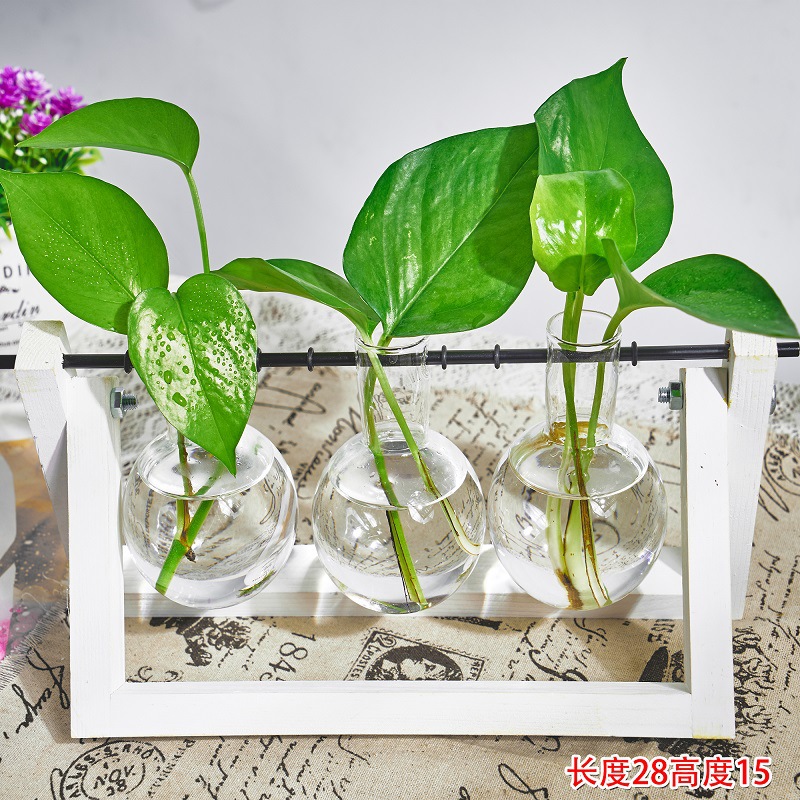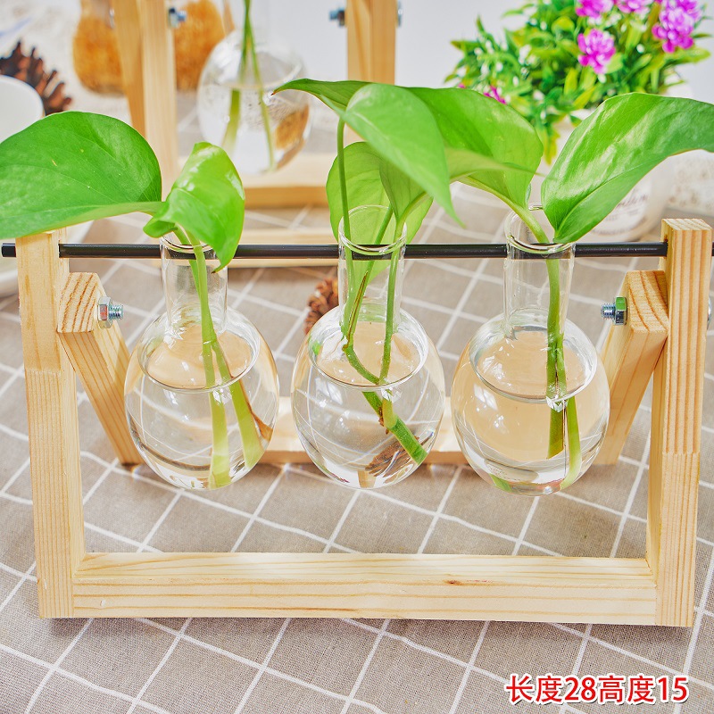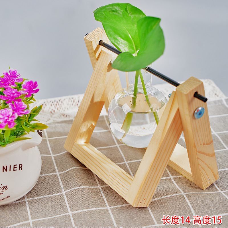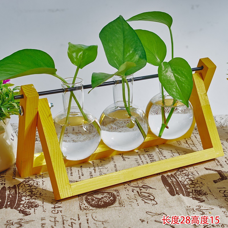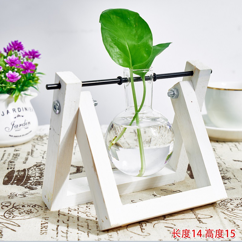 크리 에이 티브 나무 프레임 수경 꽃병 녹색 장미 식물 유리 꽃 도자기 거실 작은 컨테이너 사무실 데스크탑 장식 장식품