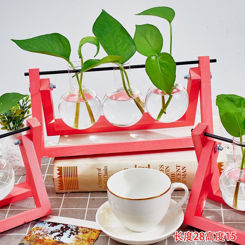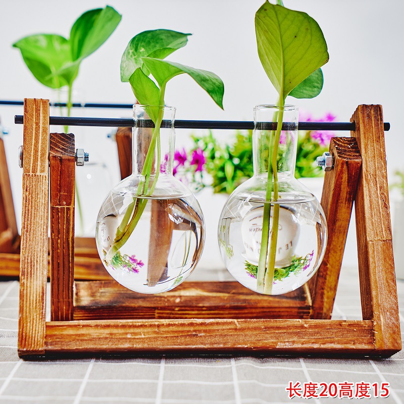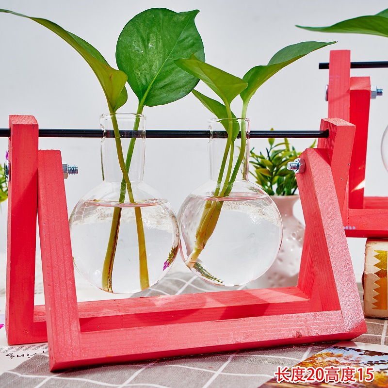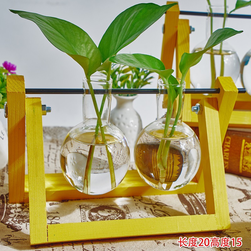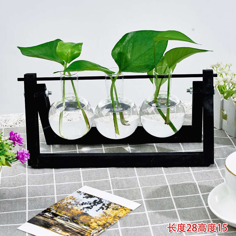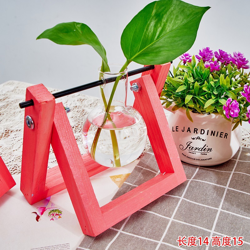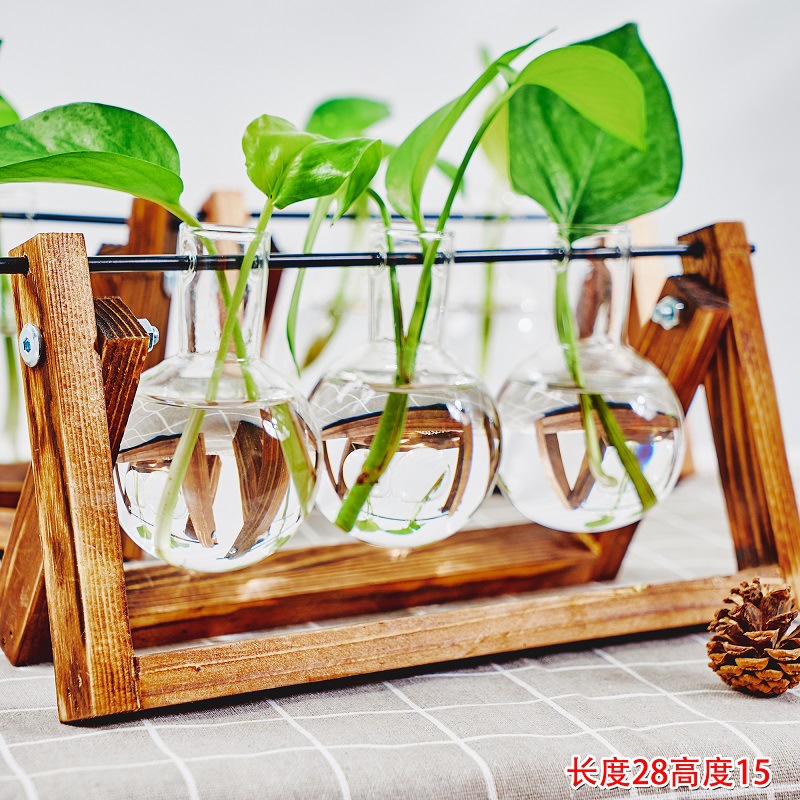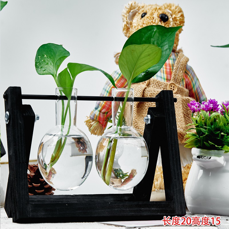 크리 에이 티브 나무 프레임 수경 꽃병 녹색 장미 식물 유리 꽃 도자기 거실 작은 컨테이너 사무실 데스크탑 장식 장식품