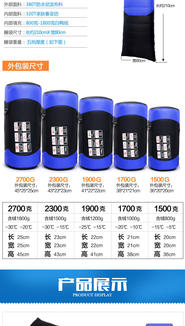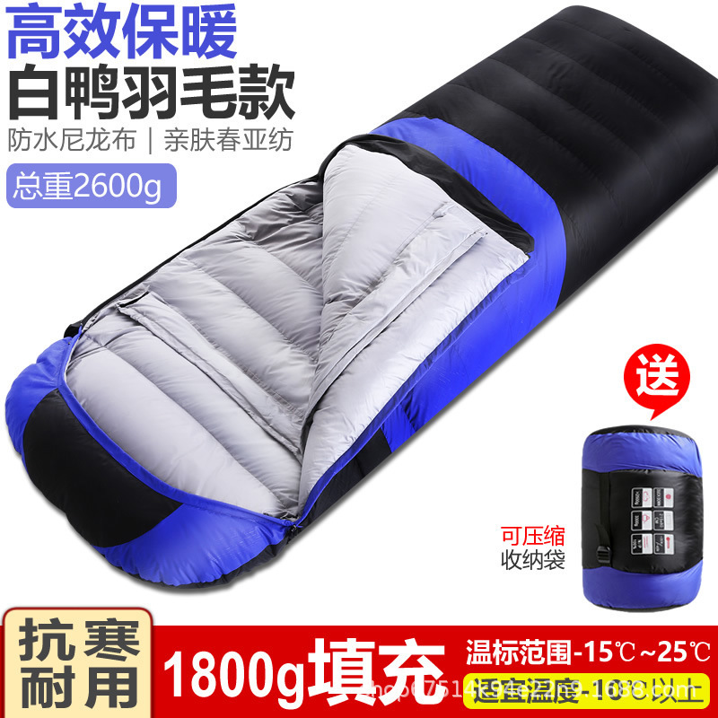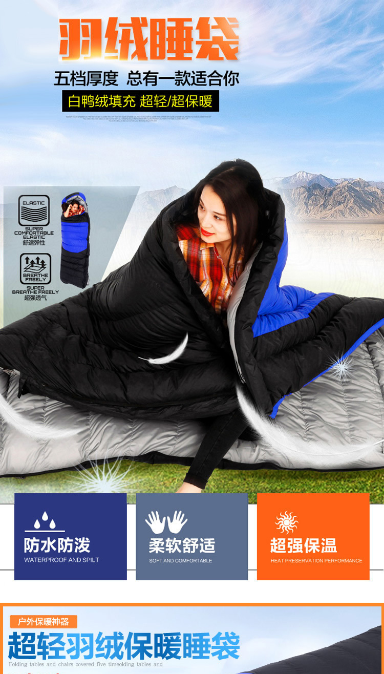 다운 침낭 봉투 기계 빨 방한 특수 두꺼운 따뜻한 여행 침낭 성인 산악 캠핑 여행 침낭스토어 가기